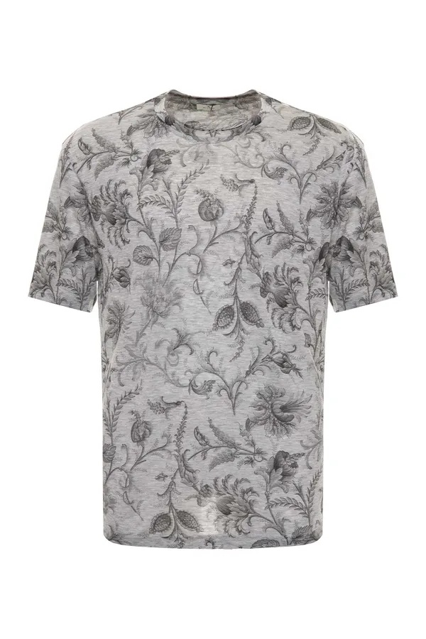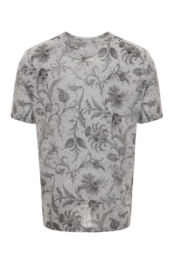 ФУТБОЛКА СЕРАЯ С ЦВЕТОЧНЫМ ПРИНТОМ, ТОНКАЯ