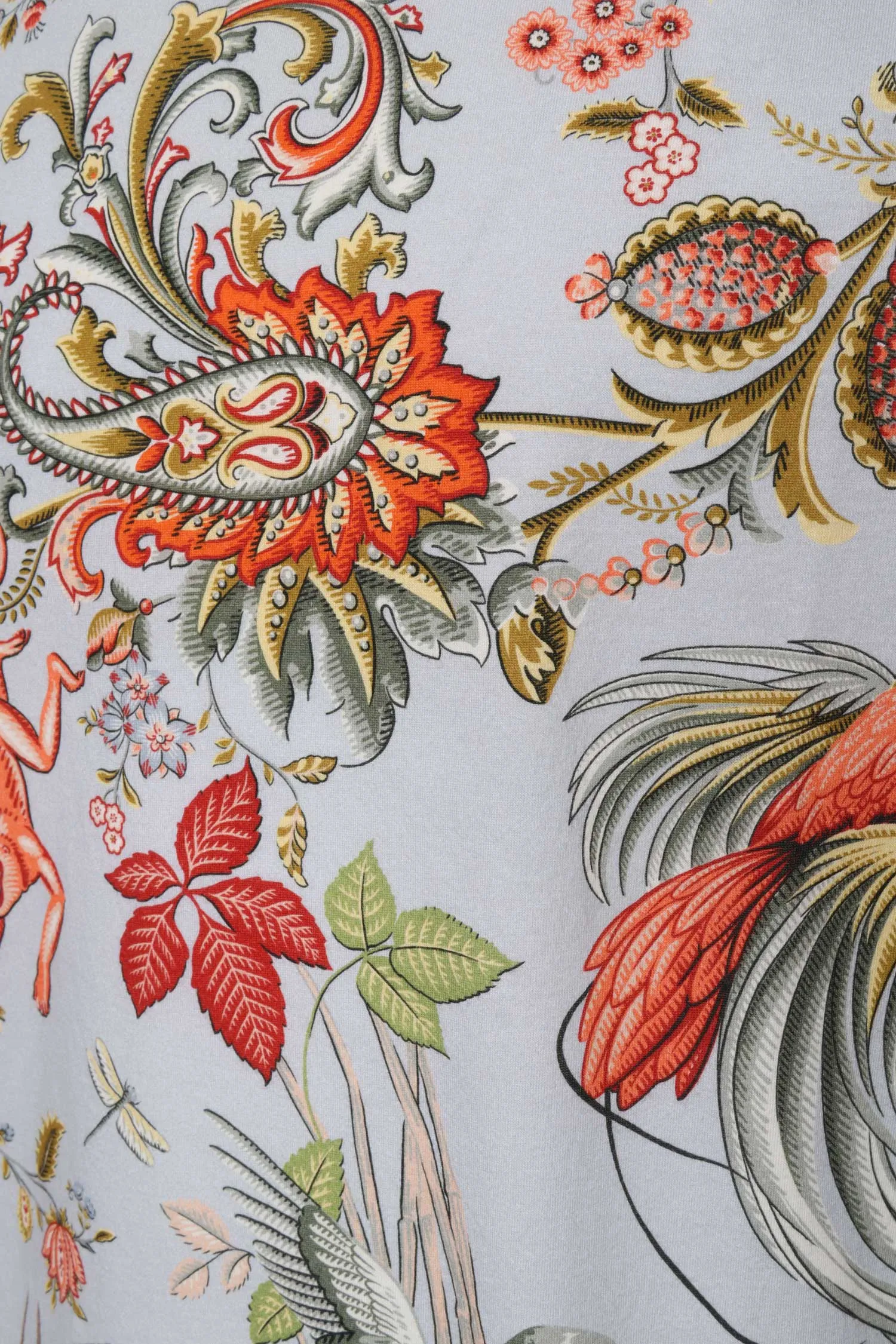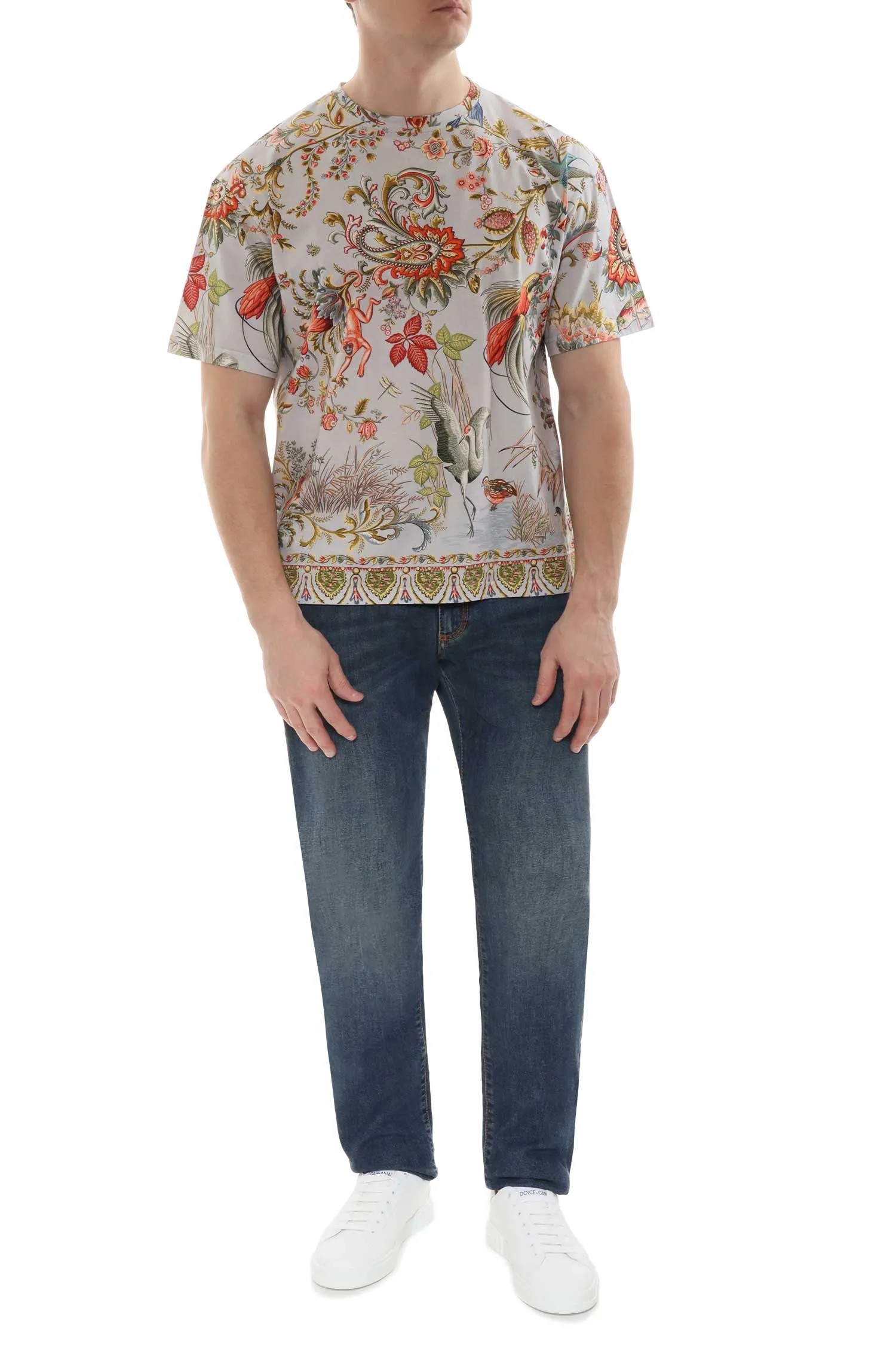 ETRO ФУТБОЛКА СЕРО-ОРАНЖЕВАЯ, ПРИНТ ПЕЙСЛИ И ПТИЦЫ