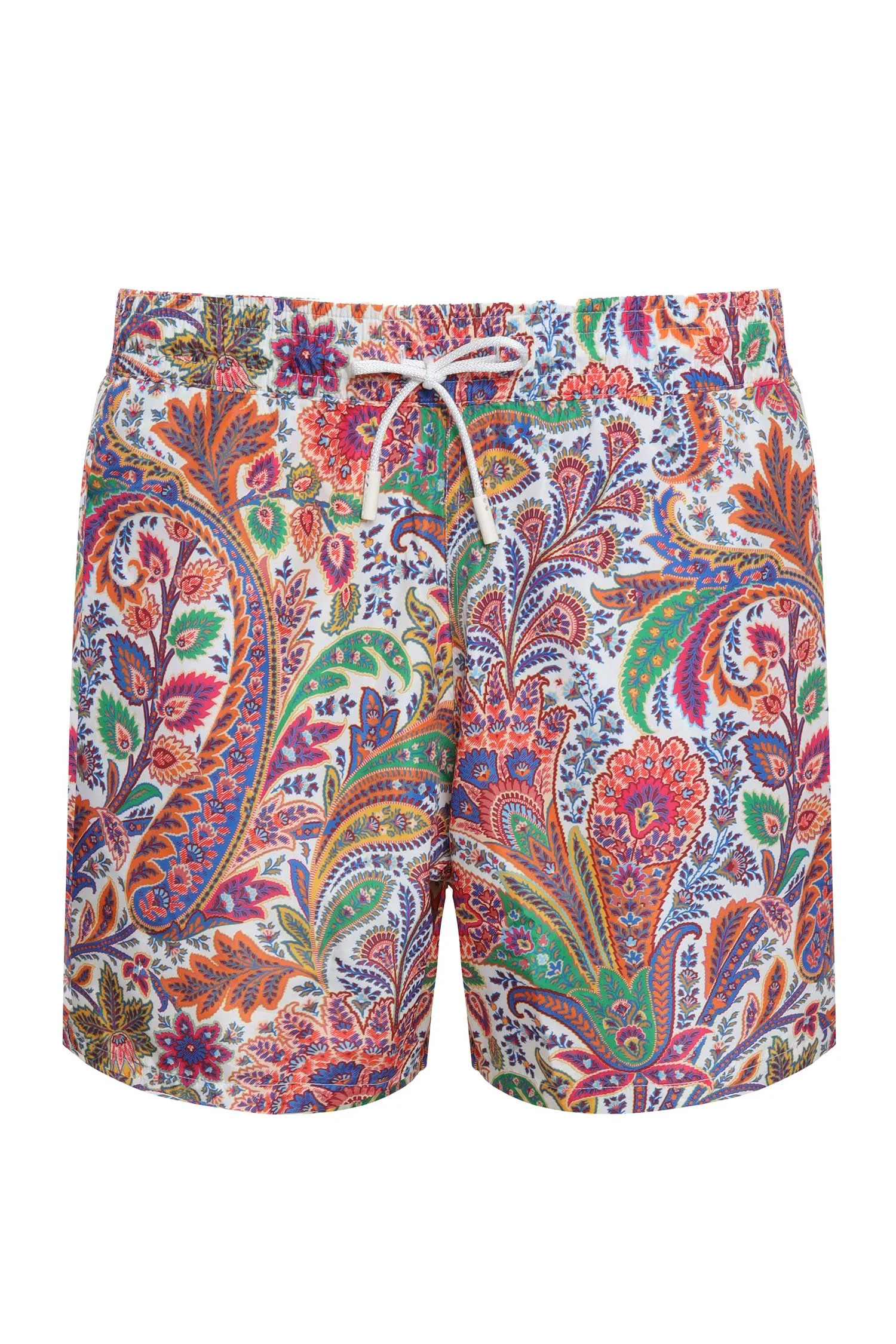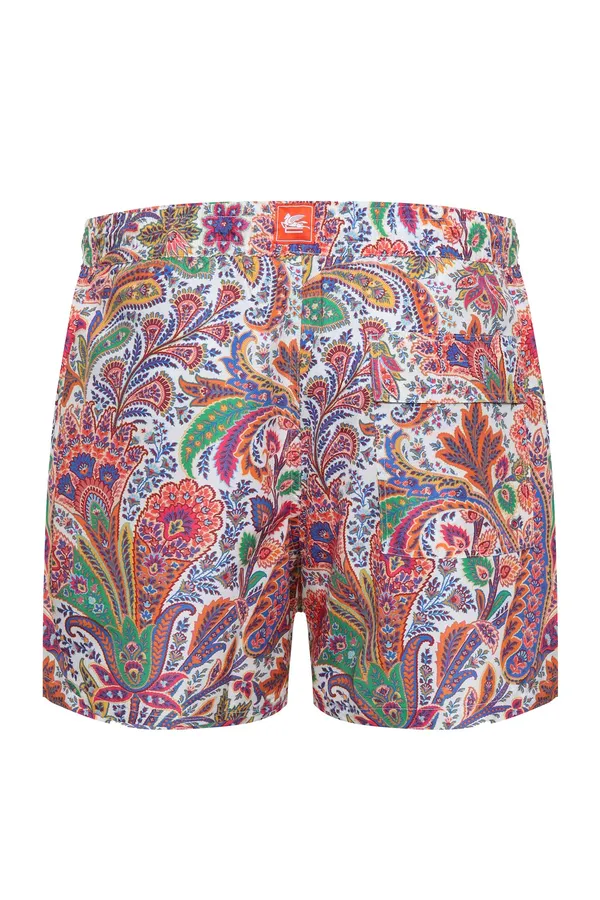 ШОРТЫ СИНЕ-ОРАНЖЕВО-ЗЕЛЁНЫЕ ПЛАВАТЕЛЬНЫЕ, ПРИНТ ПЕЙСЛИ, НА КУЛИСКЕ, СЗАДИ КАРМАН С КЛАПАНОМ