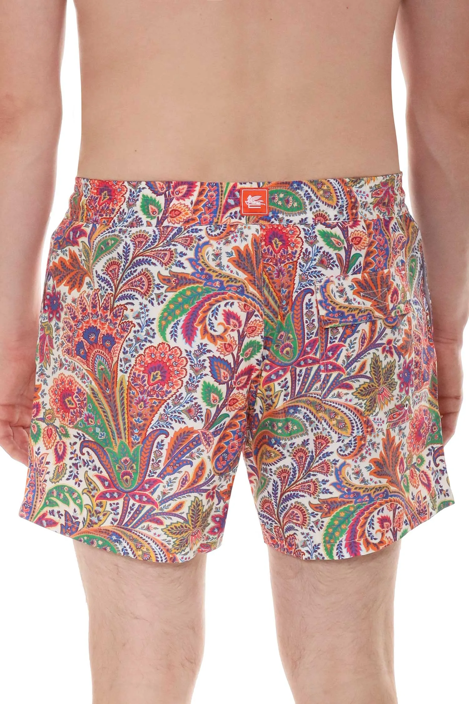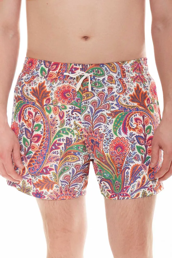 ETRO ШОРТЫ СИНЕ-ОРАНЖЕВО-ЗЕЛЁНЫЕ ПЛАВАТЕЛЬНЫЕ, ПРИНТ ПЕЙСЛИ, НА КУЛИСКЕ, СЗАДИ КАРМАН С КЛАПАНОМ
