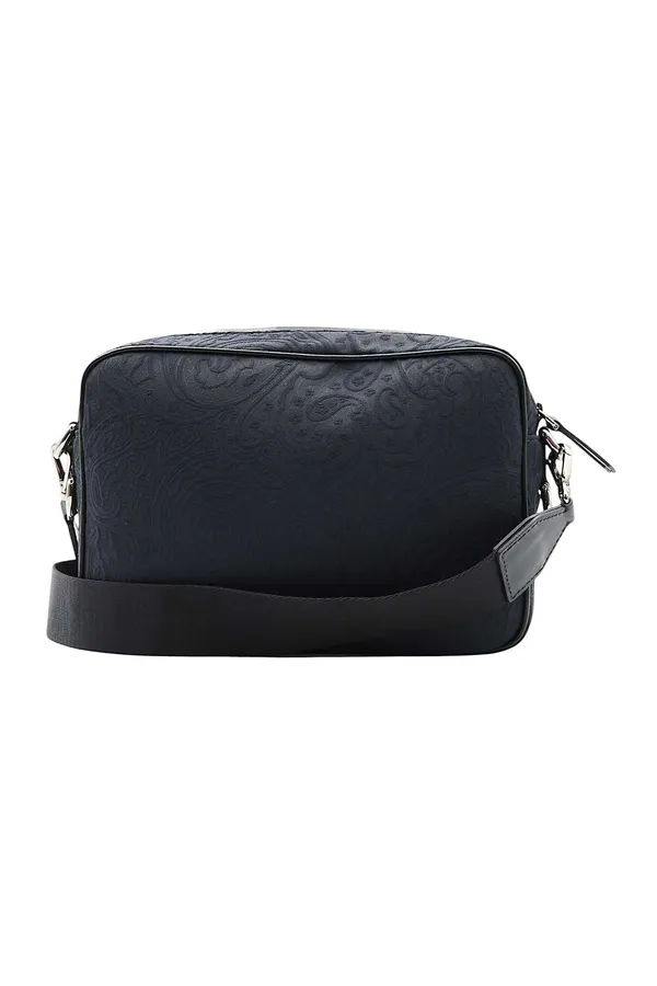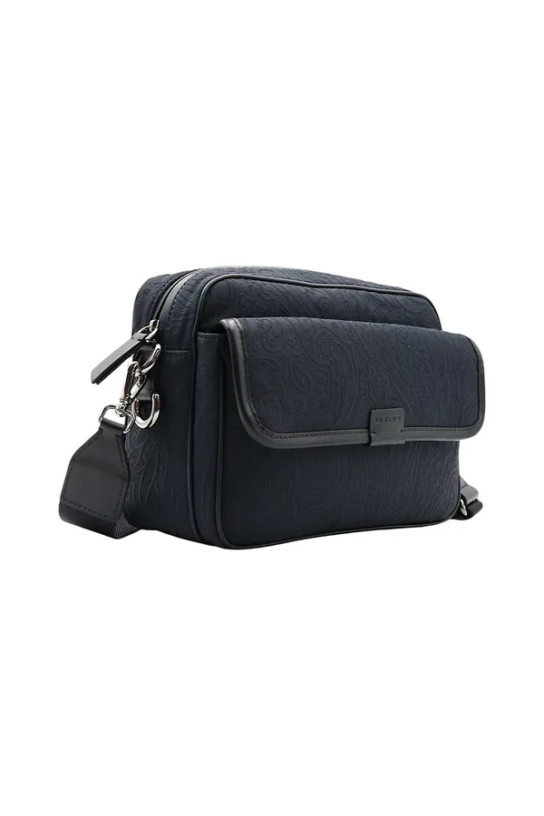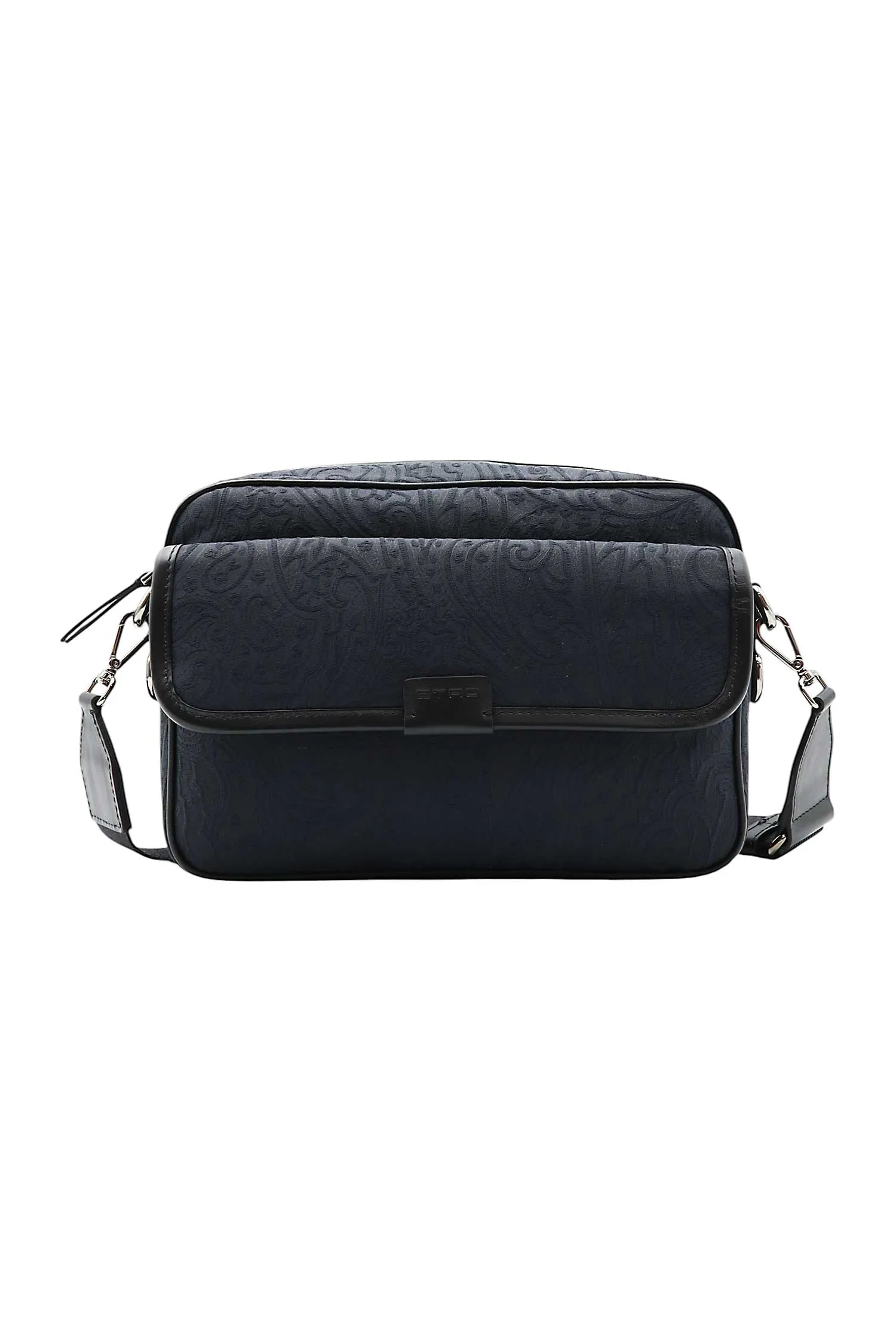 СУМКА Т/СИНЯЯ ИЗ НЕЙЛОНА, ПРИНТ ПЕЙСЛИ, ЧЁРНАЯ ОКАНТОВКА, НА МОЛНИИ, НАКЛАДНОЙ КАРМАН С КЛАПАНОМ, Ч/З ПЛЕЧО