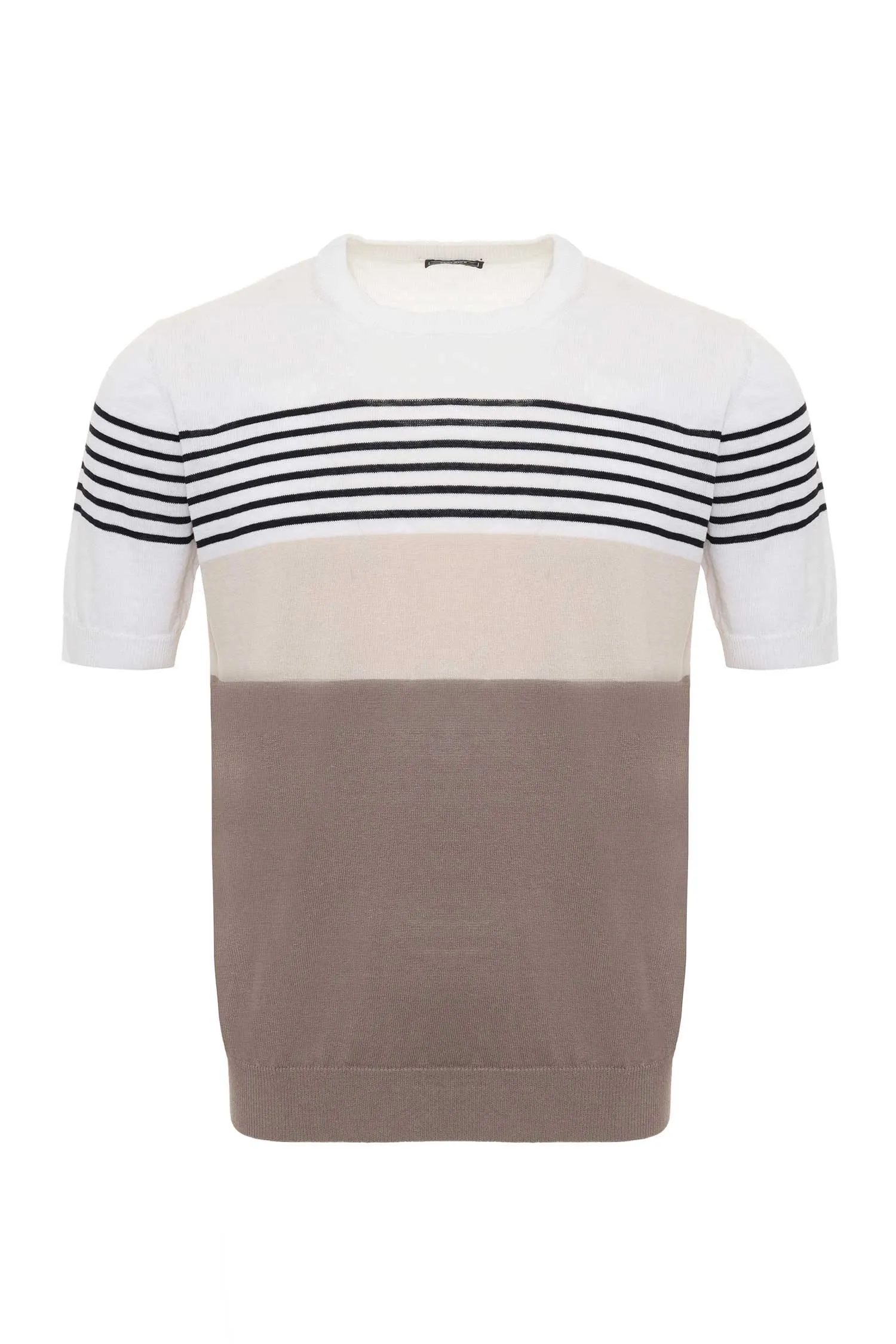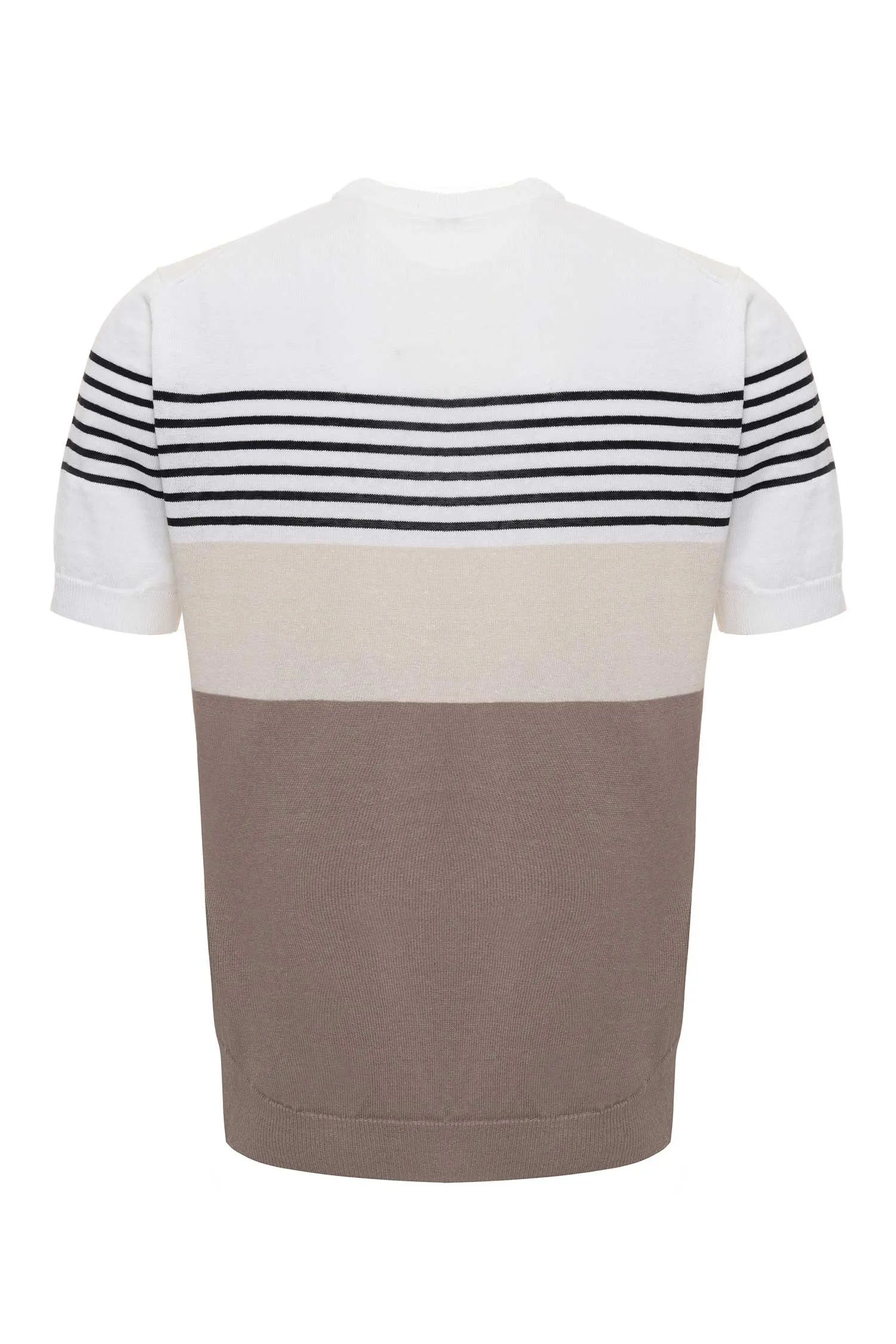 PESERICO ФУТБОЛКА Т/БЕЖЕВО-БЕЛАЯ В Т/СИНЮЮ ПОЛОСКУ, ИЗ ЛЬНА, ТРИКОТАЖНАЯ