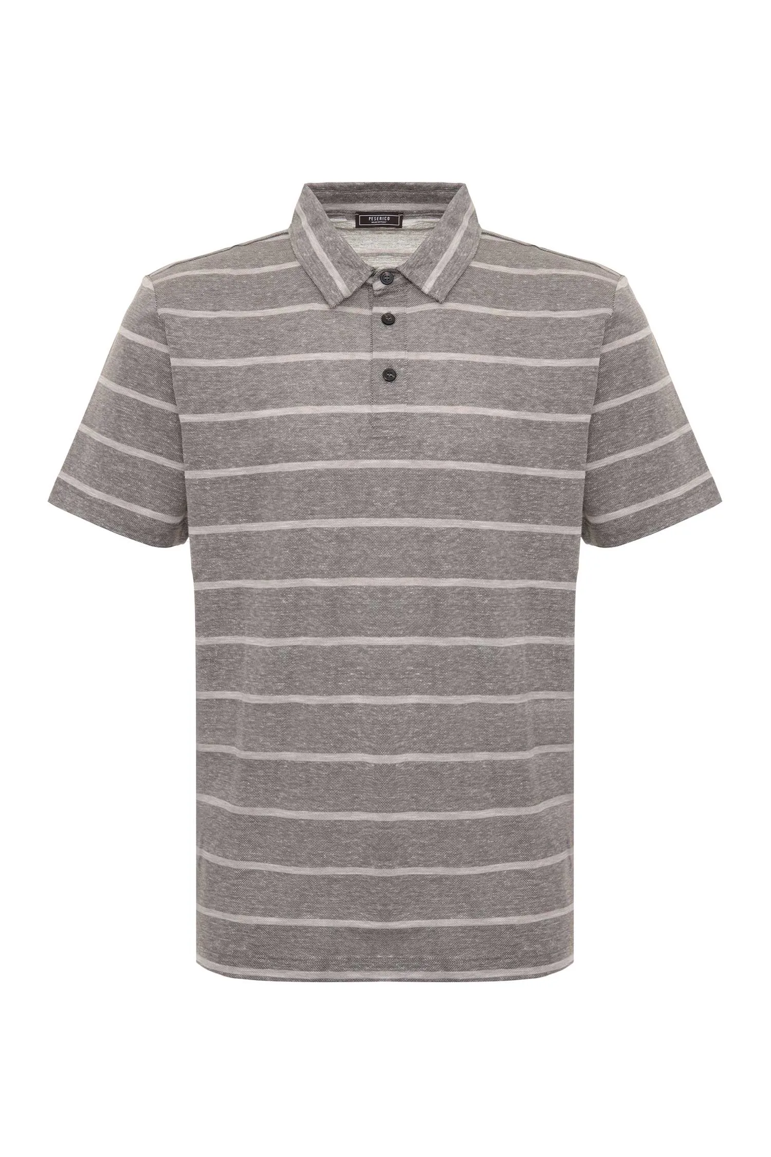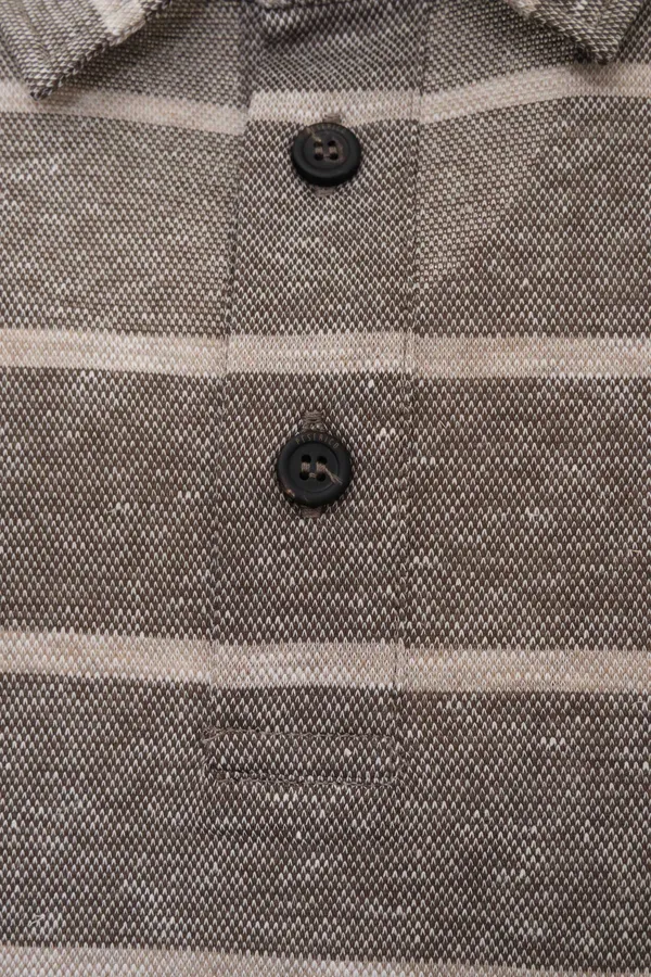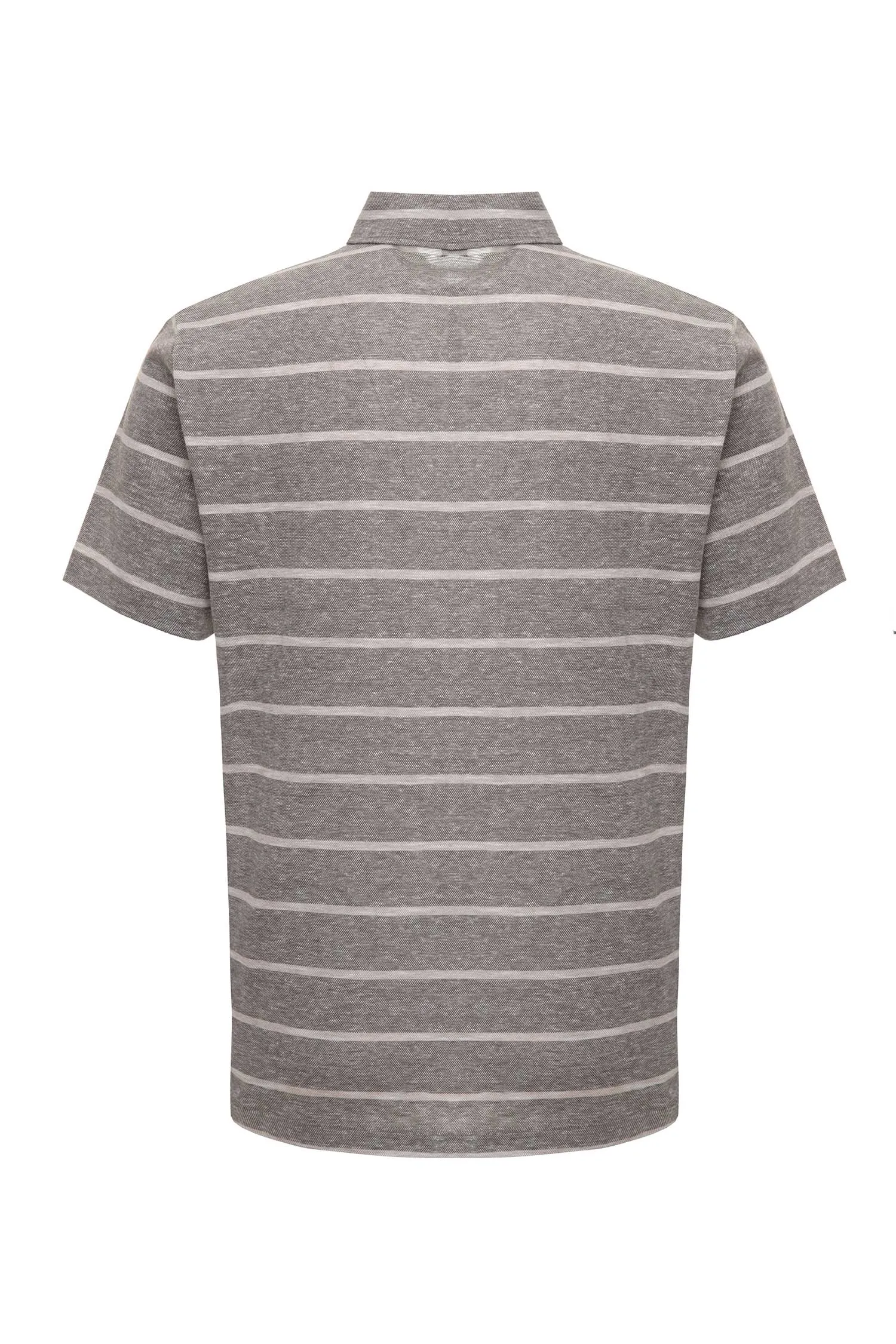 PESERICO ПОЛО КОРИЧНЕВО-СЕРОЕ В ПОЛОСКУ, ПИКЕ, ИЗ ЛЬНА