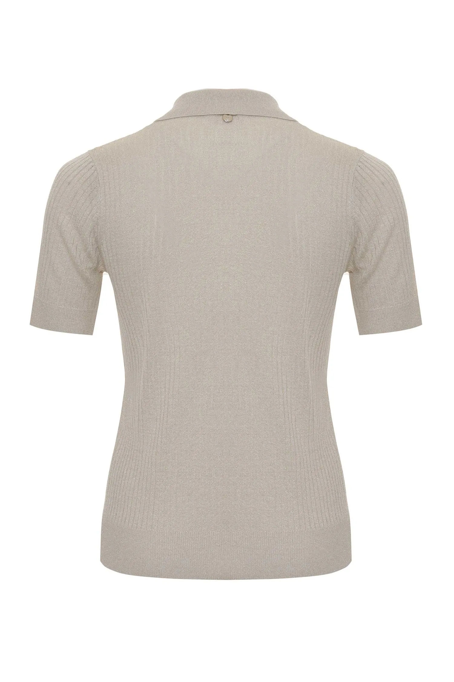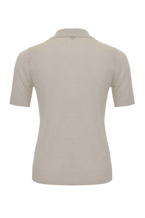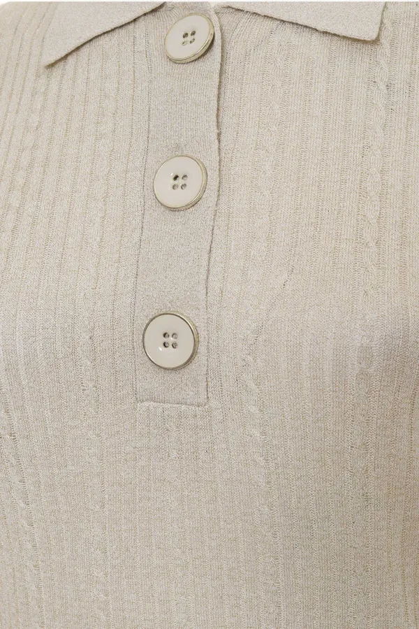 ДЖЕМПЕР-ПОЛО M.6285 МОЛОЧНЫЙ С ЛЮРЕКСОМ, ВЫВЯЗАННЫЕ КОСЫ, ВОРОТ НА КРУПНЫХ ПУГОВИЦАХ, К/РУК.