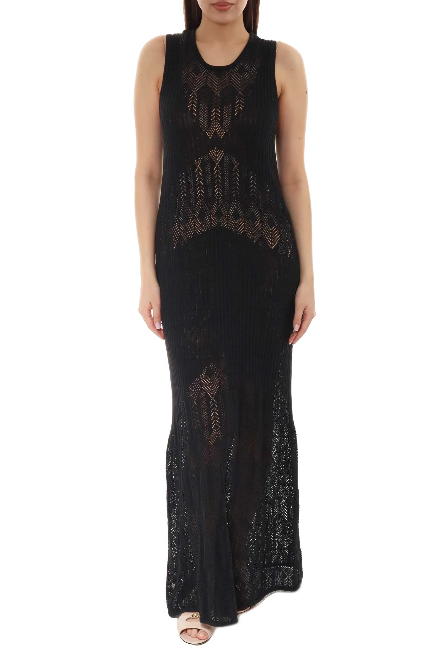 ПЛАТЬЕ ЧЁРНОЕ, АЖУРНАЯ ВЯЗКА, ДЛИННОЕ, БЕЖЕВАЯ СОРОЧКА, Б/РУК.