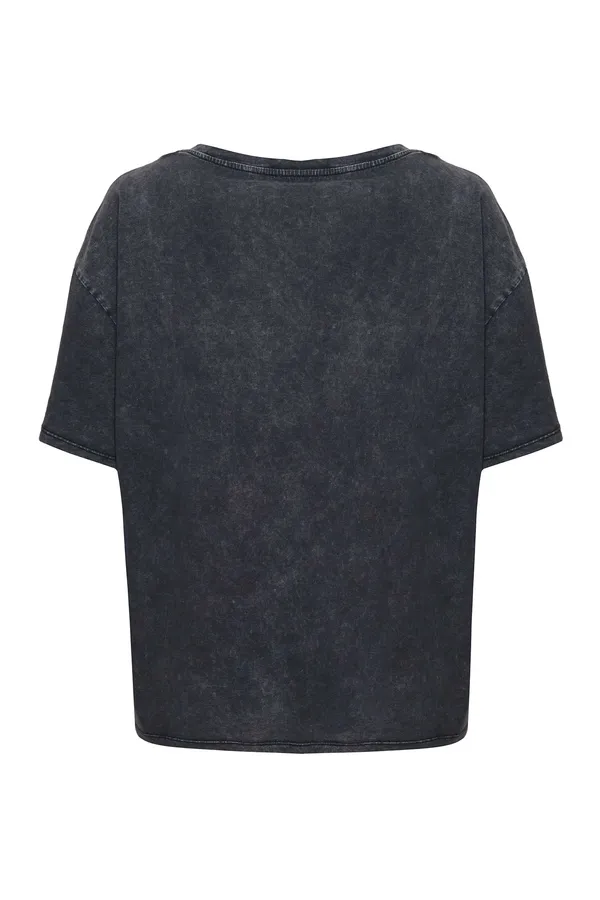 LIU-JO ФУТБОЛКА Т/СЕРАЯ, СВОБОДНАЯ, ВЫБЕЛЕННАЯ, НА ГРУДИ БЕЛАЯ НАДПИСЬ, ОТД.КЛЁПКИ И СТРАЗЫ