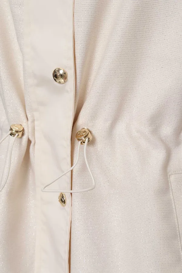 LIU-JO КУРТКА-ПАРКА МОЛОЧНО-ЗОЛОТИСТАЯ, КОМБИНИР., ТЕКСТИЛЬ+НЕЙЛОН, ПОЯС НА КУЛИСКЕ, ВЫСОКИЙ ВОРОТ-СТОЙКА