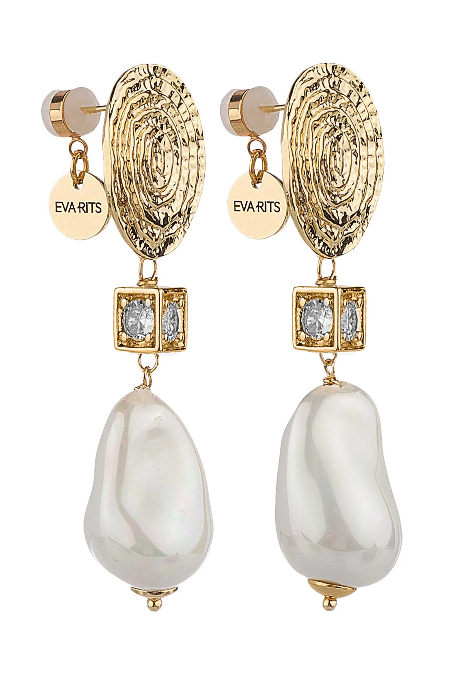 СЕРЬГИ-ГВОЗДИКИ BAROQUE GOLD ЗОЛОТИСТЫЕ, ПОДВЕСКА ИЗ ЖЕМЧУГА МАЙОРКА