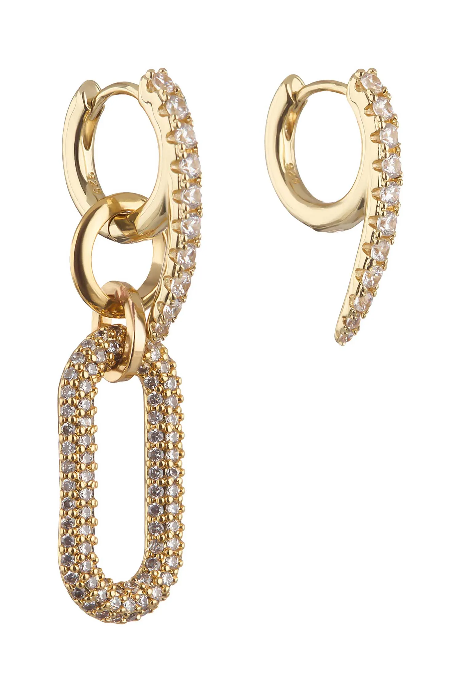 СЕРЬГИ CLAWE ЗОЛОТИСТЫЕ, АСИММЕТРИЧНЫЕ, ПОДВЕСКА-ОВАЛ, ОТД.ЦИРКОНЫ