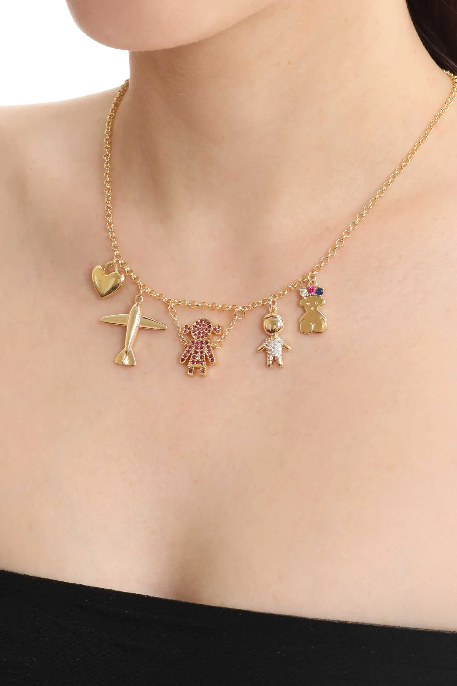 КОЛЬЕ TOUR DE FRANCE ЗОЛОТИСТОЕ, ПОДВЕСКИ ЧЕЛОВЕЧКИ, САМОЛЁТИК И СЕРДЦЕ, РЕГУЛИРУЕМЫЙ РАЗМЕР