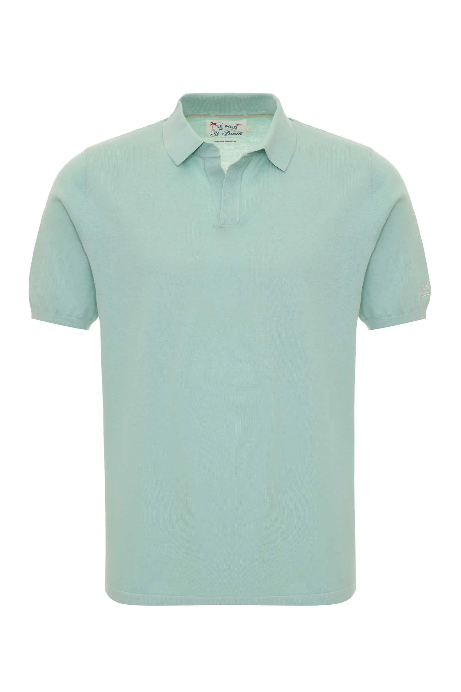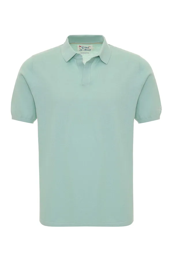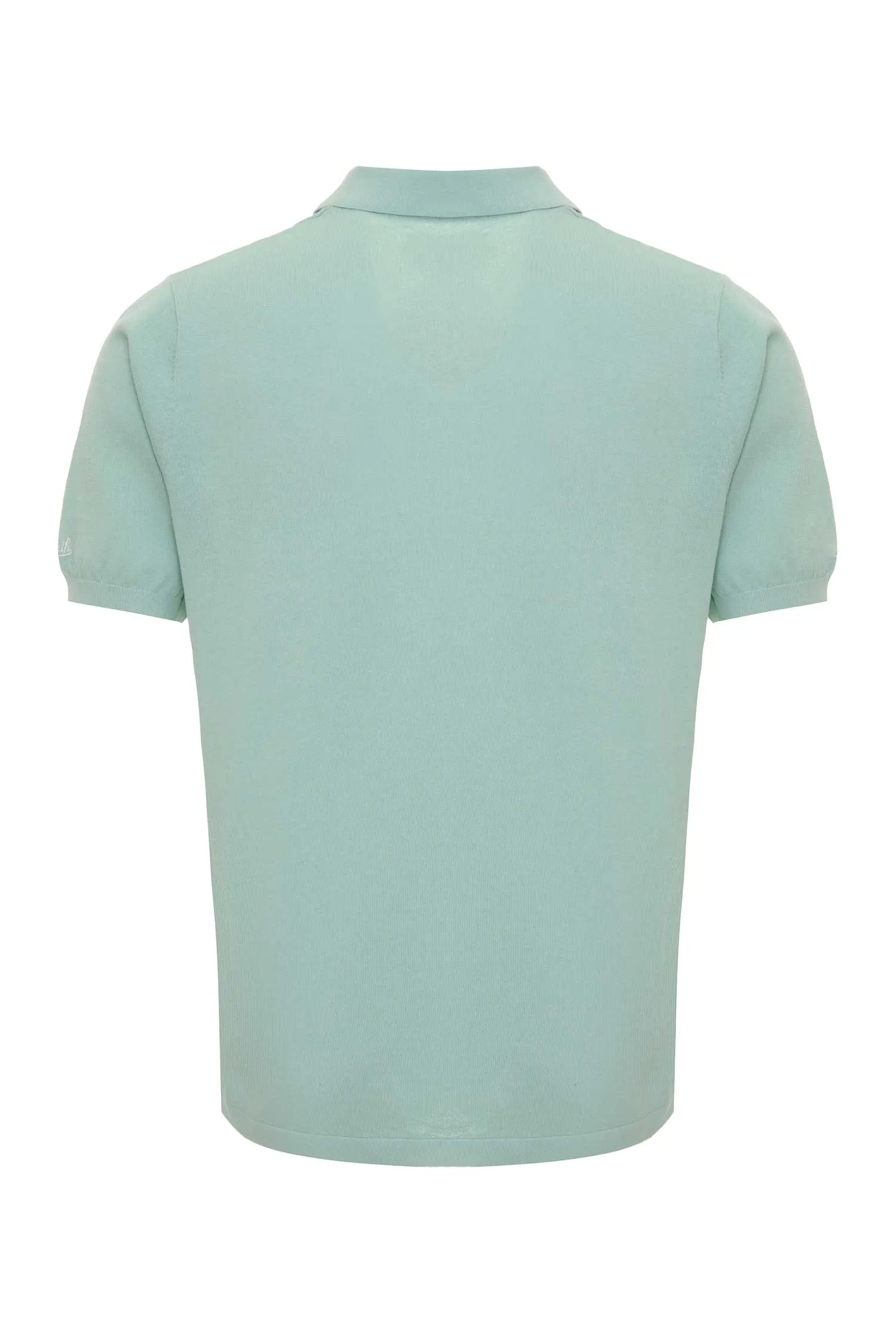 ДЖЕМПЕР-ПОЛО SLOAN МЯТНЫЙ, НА РУКАВЕ ВЫШИТАЯ БЕЛАЯ ЛОГО-НАДПИСЬ, V-ВЫРЕЗ, К/РУК.