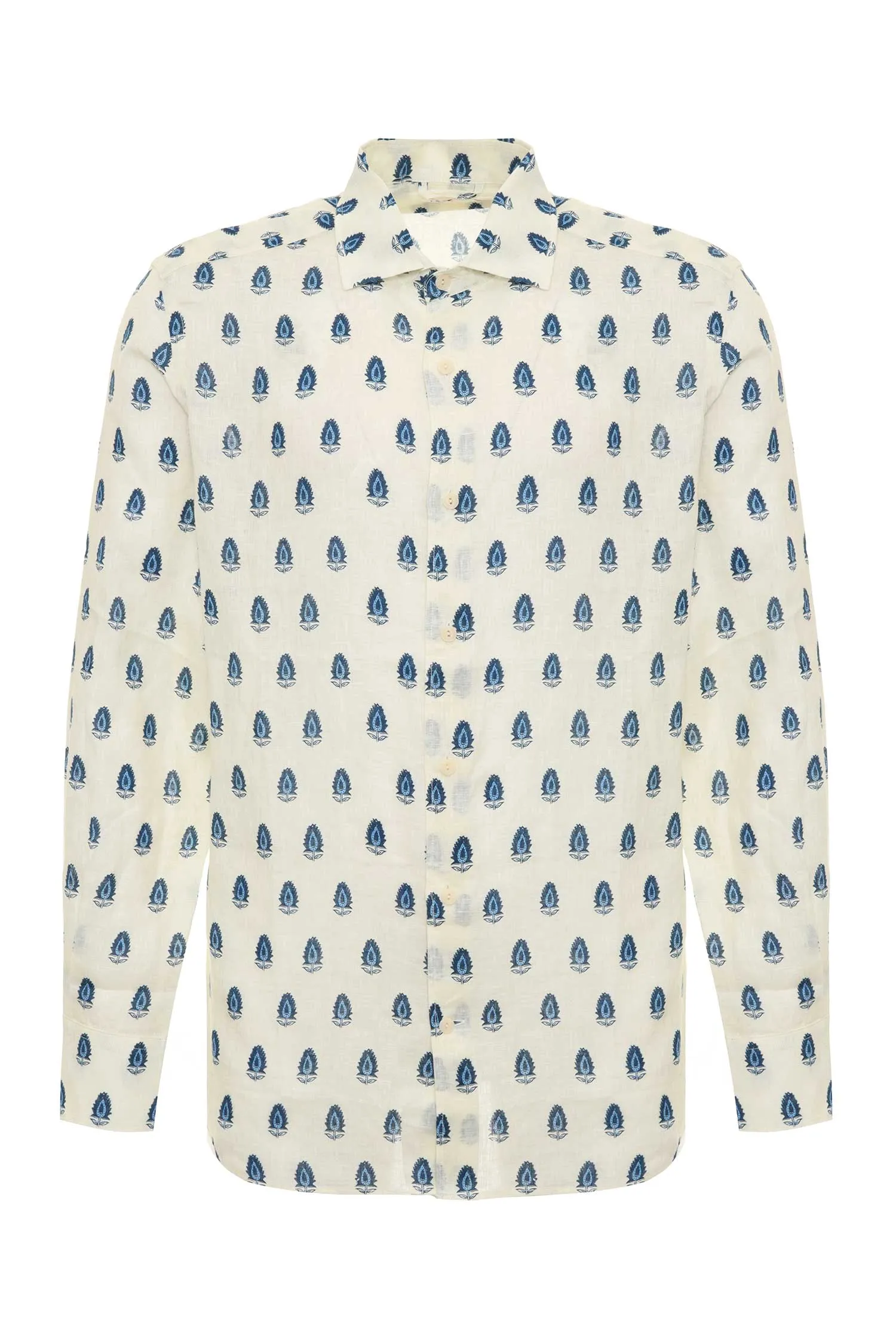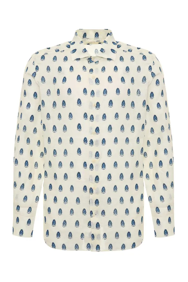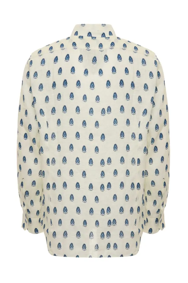 РУБАШКА PAMPLONA МОЛОЧНАЯ ИЗ ЛЬНА, ПРИНТ СИНИЕ ЦВЕТЫ, ДЛ/РУК.