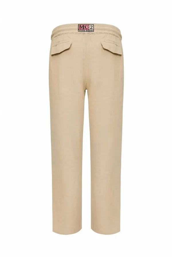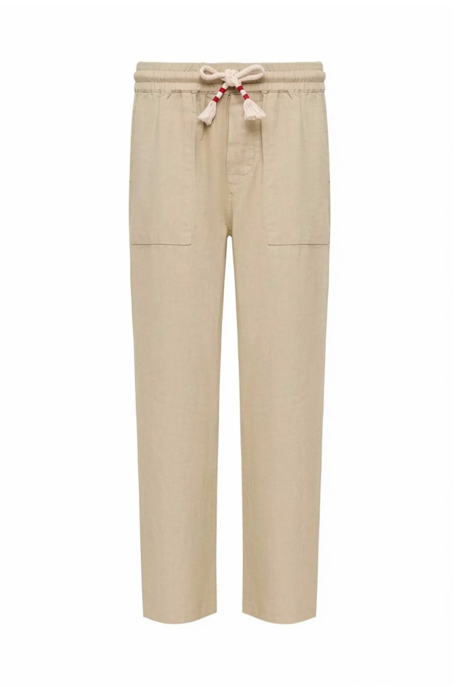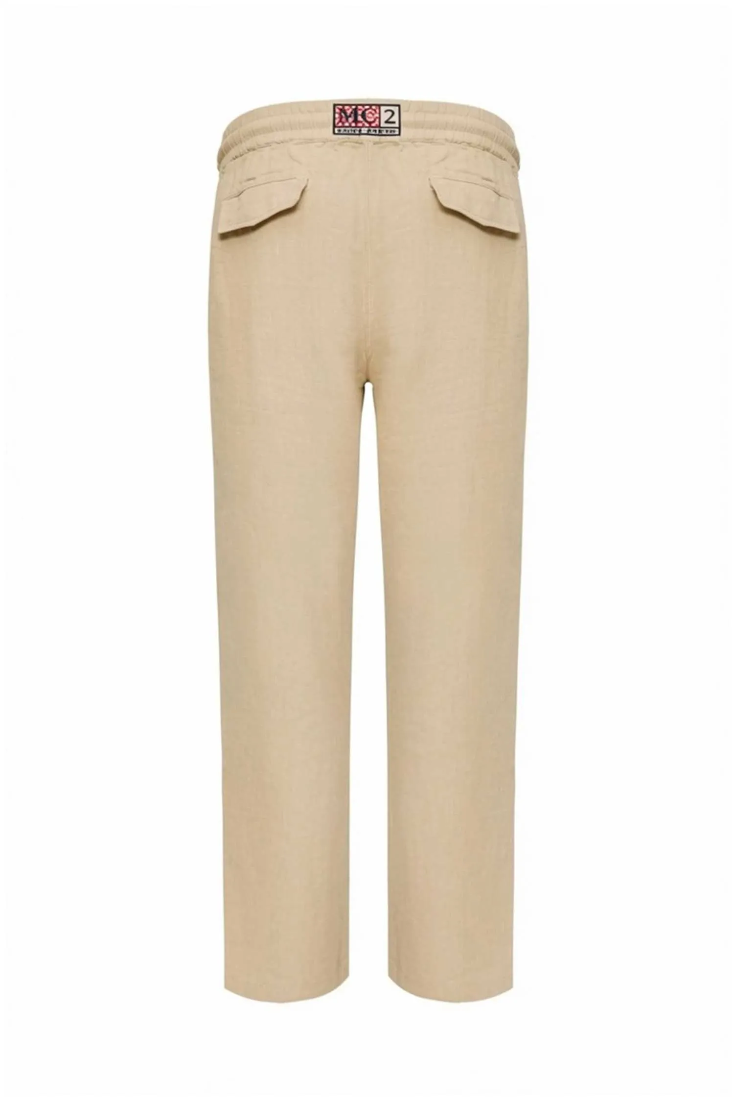 БРЮКИ CALAIS БЕЖЕВЫЕ ЛЁН, ПРЯМЫЕ, ЭЛАСТИЧНЫЙ ПОЯС НА КУЛИСКЕ, СЗАДИ КАРМАНЫ С КЛАПАНОМ, НАШИВКА-ЛОГО