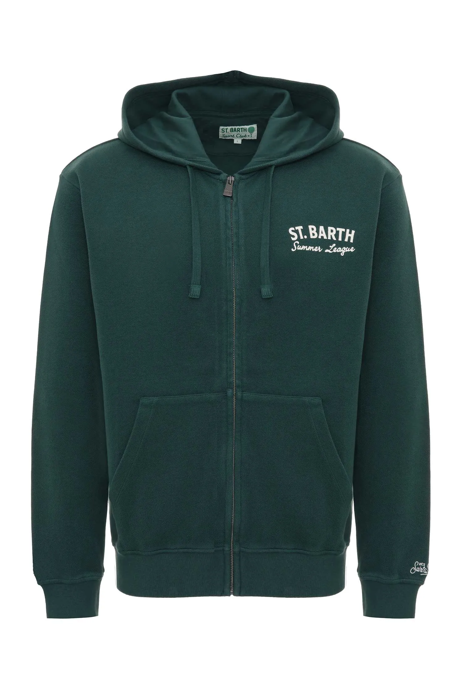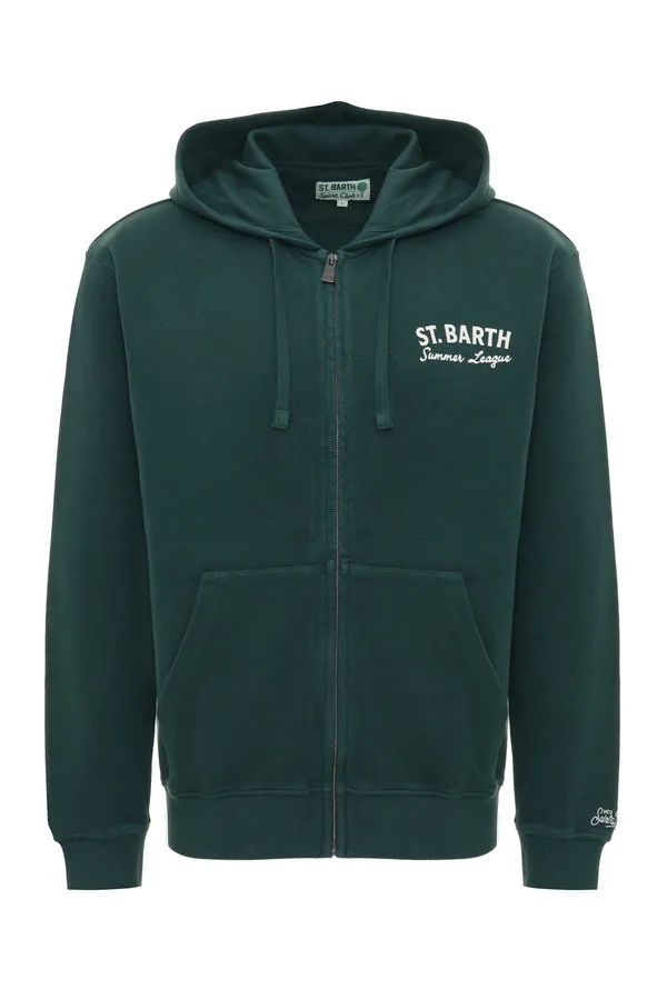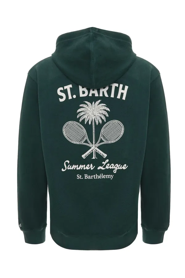 ХУДИ ZACK Т/ЗЕЛЁНОЕ, НА СПИНЕ БЕЛАЯ ЛОГО-НАДПИСЬ, РИС.РАКЕТКИ И ПАЛЬМА, НАКЛАДНЫЕ КАРМАНЫ, КАПЮШОН
