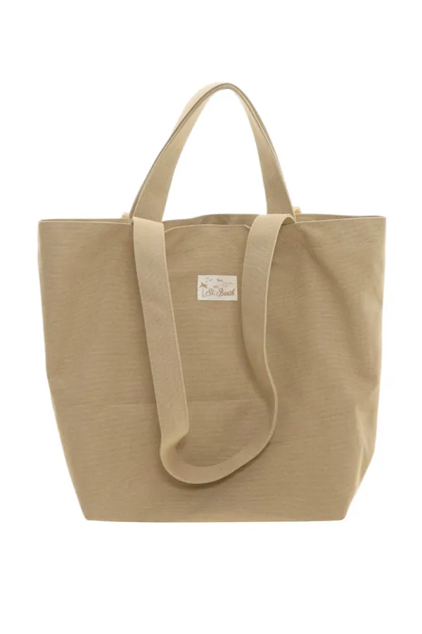 СУМКА-ШОПЕР ESSENTIAL BEACH COTTON БЕЖЕВАЯ, БОЛЬШАЯ, Т/КОРИЧНЕВАЯ ЛОГО-НАДПИСЬ, ДВОЙНЫЕ РУЧКИ