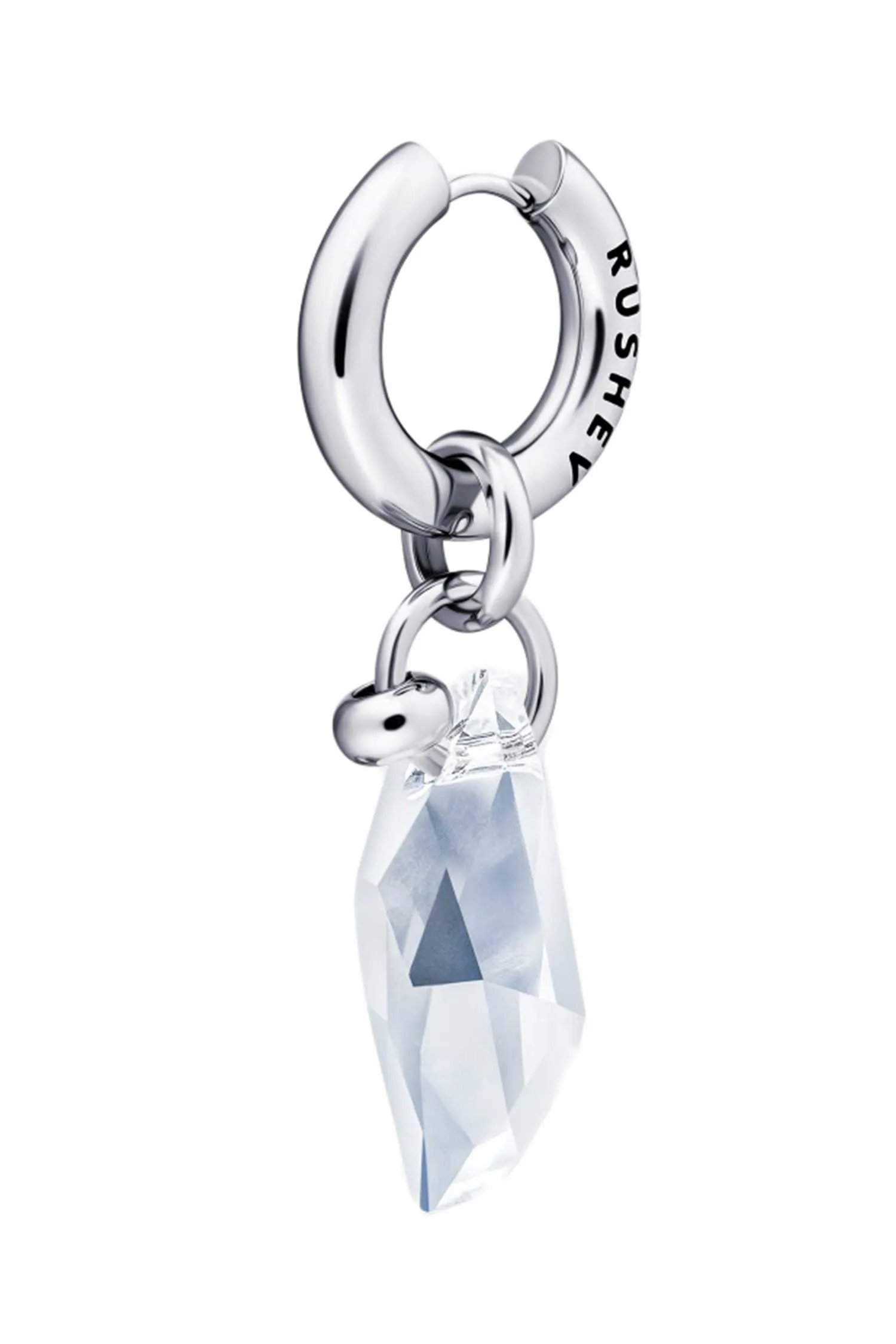 МОНОСЕРЬГА LIQUID CRYSTAL СЕРЕБРИСТАЯ, ПОДВЕСКА-КРИСТАЛЛ, ЛОГО-НАДПИСЬ