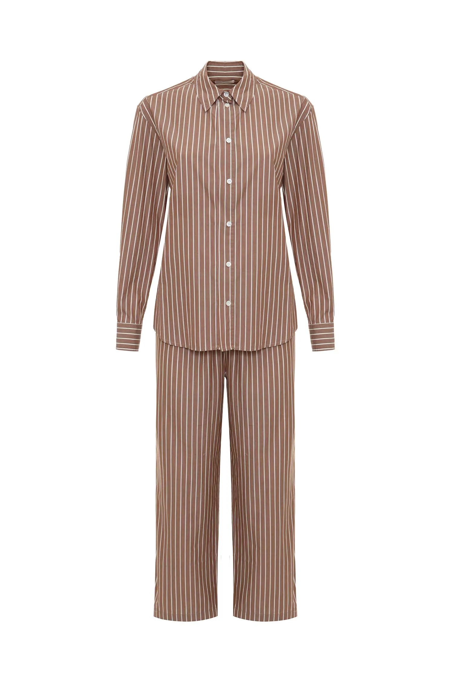 На размер S: объём груди 104 см, объём талии 66 см, объём бёдер 106 см, длина рукава 57 см, высота посадки 34 см, длина изделия (верх) 68 см, длина изделия (низ) 101 см