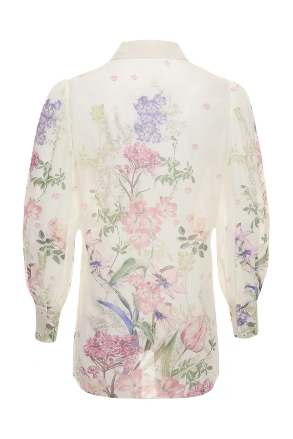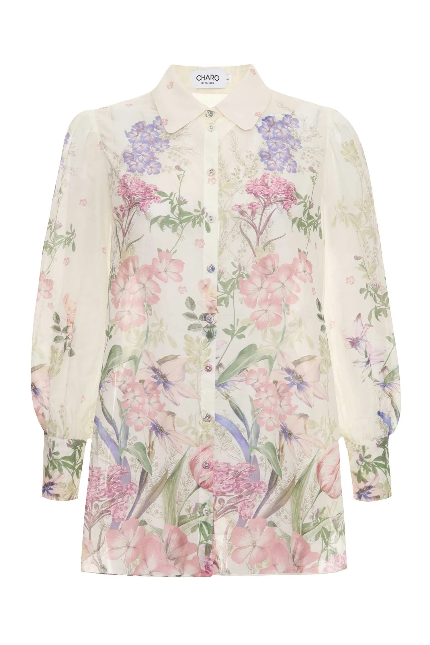 CHARO RUIZ IBIZA РУБАШКА ASTER МОЛОЧНАЯ С ВЫСОКИМИ РАЗРЕЗАМИ, ПРИНТ СИРЕНЕВЫЕ/РОЗОВЫЕ ЦВЕТЫ, СВОБОДНАЯ, ДЛ/РУК.