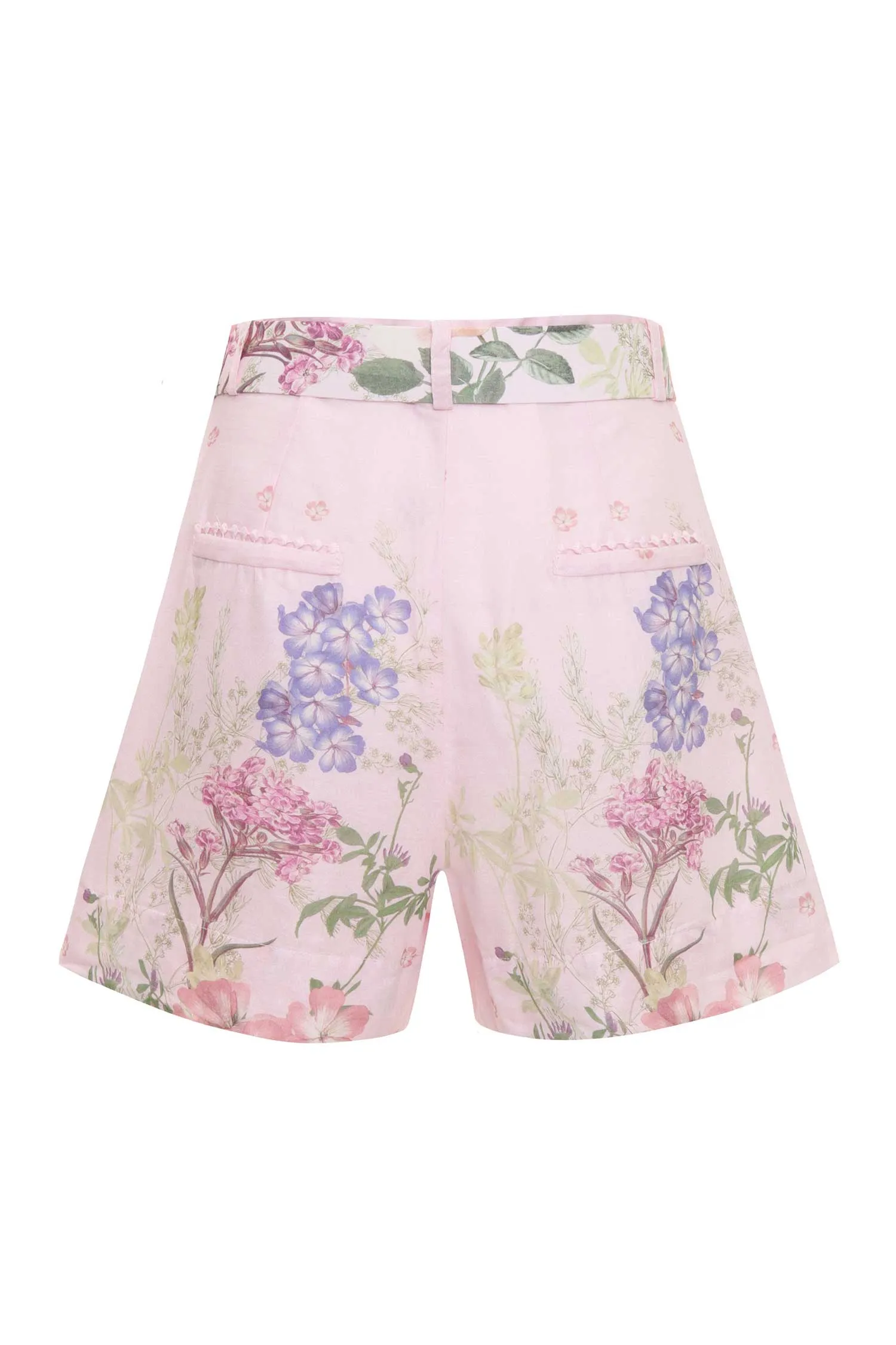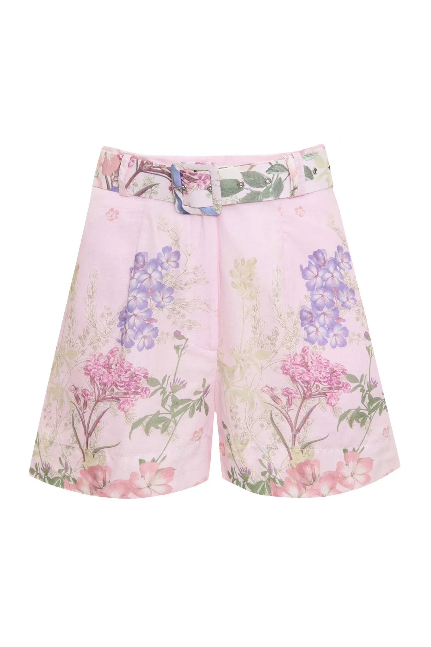 CHARO RUIZ IBIZA ШОРТЫ PANSY РОЗОВЫЕ, ПРИНТ СИРЕНЕВЫЕ/РОЗОВЫЕ ЦВЕТЫ, КОРОТКИЕ, КАРМАНЫ ОТД.ШИТЬЁ, РЕМЕНЬ С ПРЯЖКОЙ