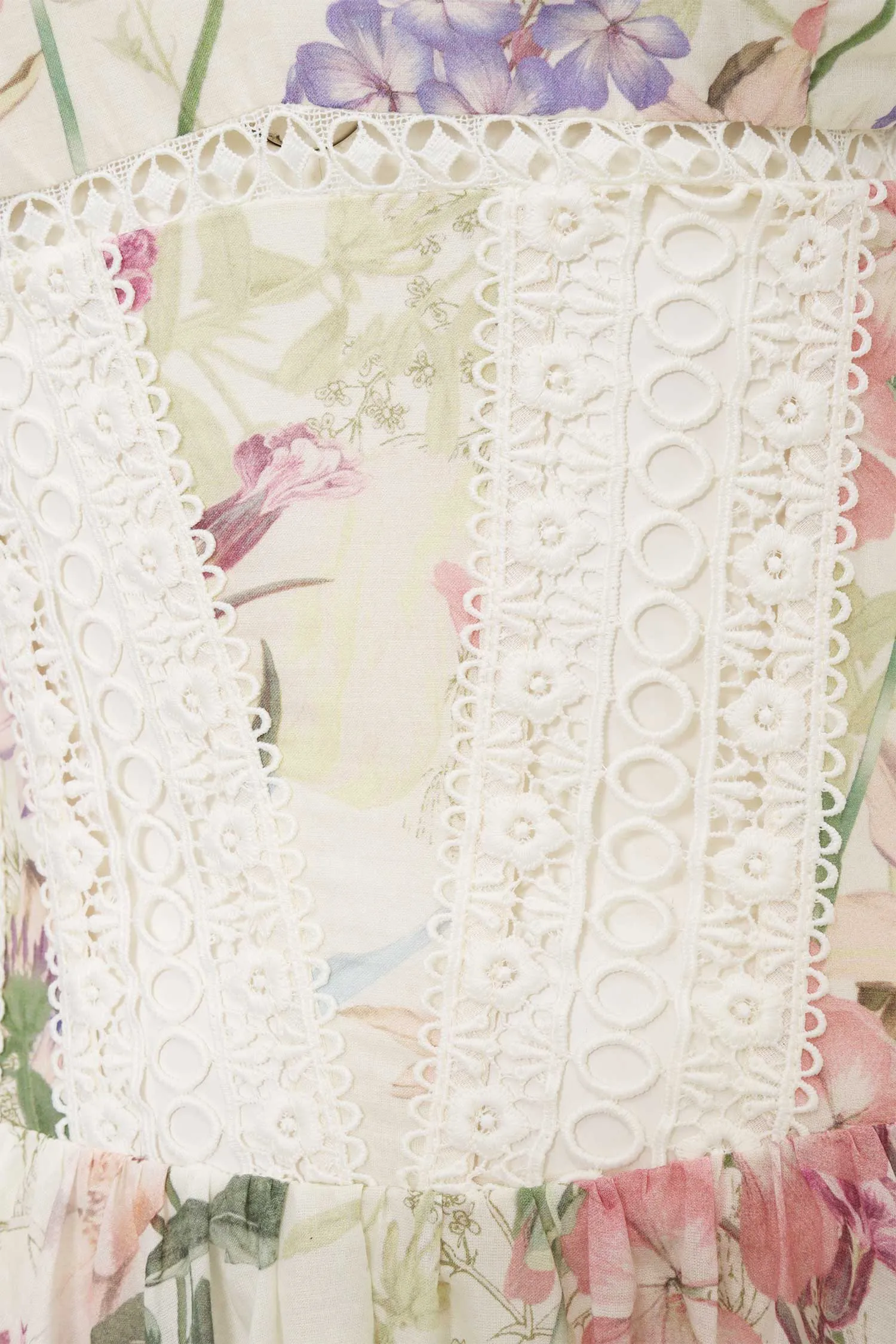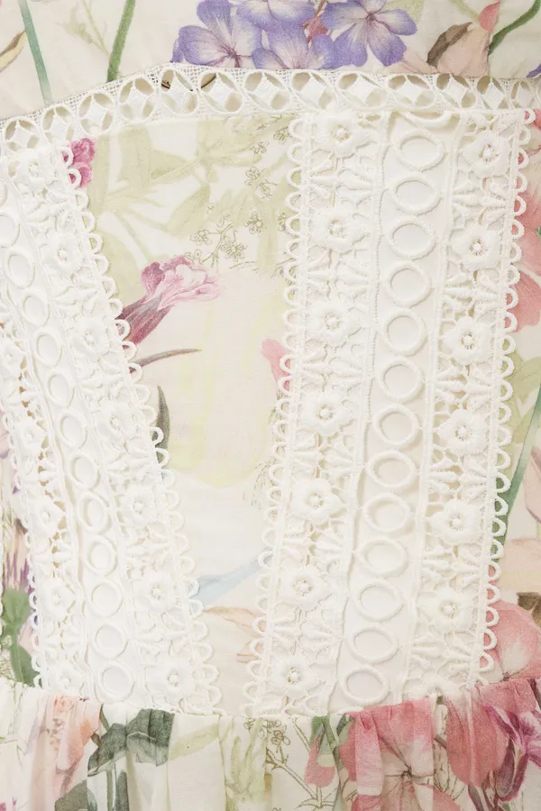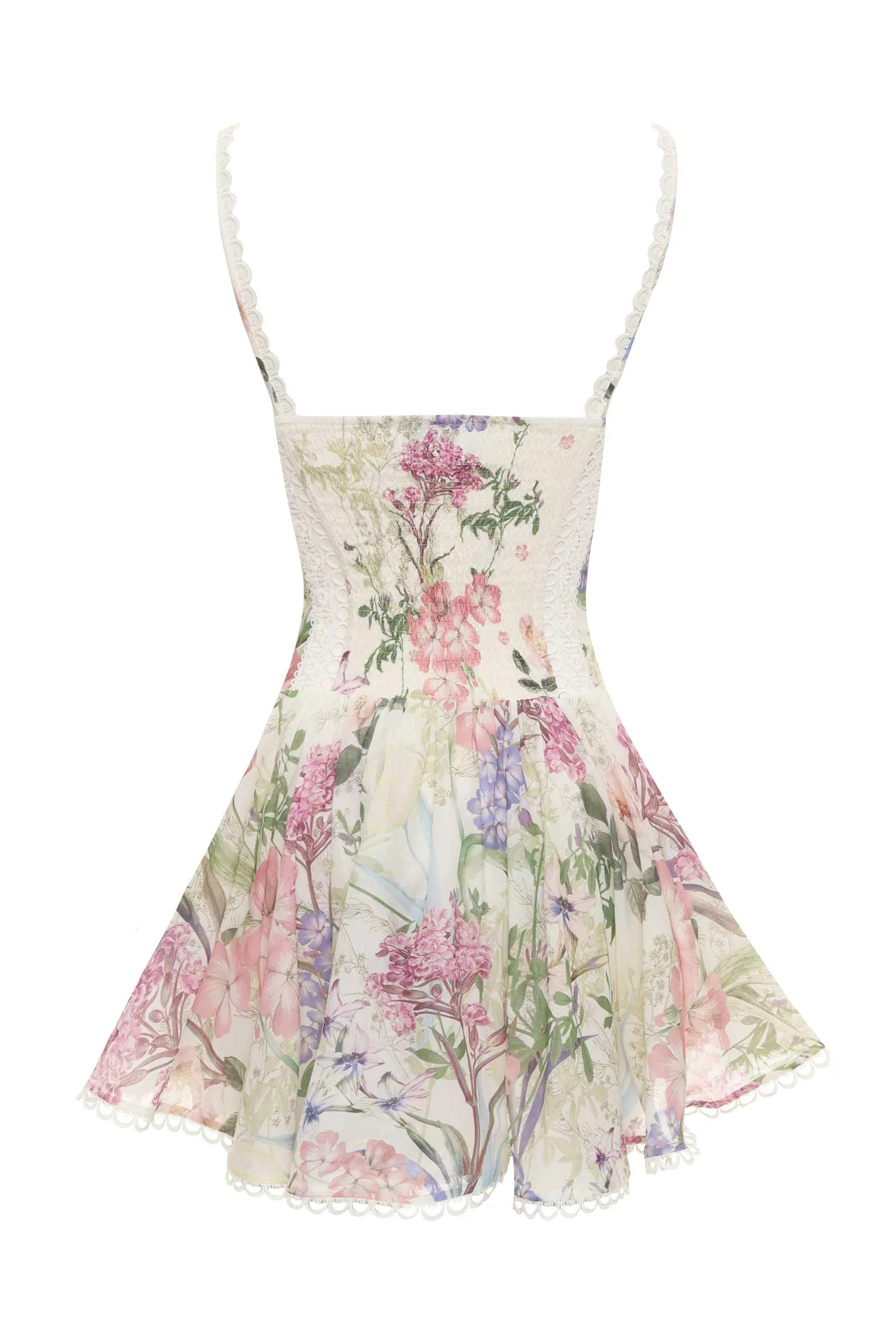 CHARO RUIZ IBIZA САРАФАН GARDENIA МОЛОЧНЫЙ, ПРИНТ СИРЕНЕВЫЕ/РОЗОВЫЕ ЦВЕТЫ, КОРОТКИЙ, ЛИФ-КОРСЕТ ОТД.КРУЖЕВОМ, ЮБКА-СОЛНЦЕ, БРЕТЕЛЬКИ