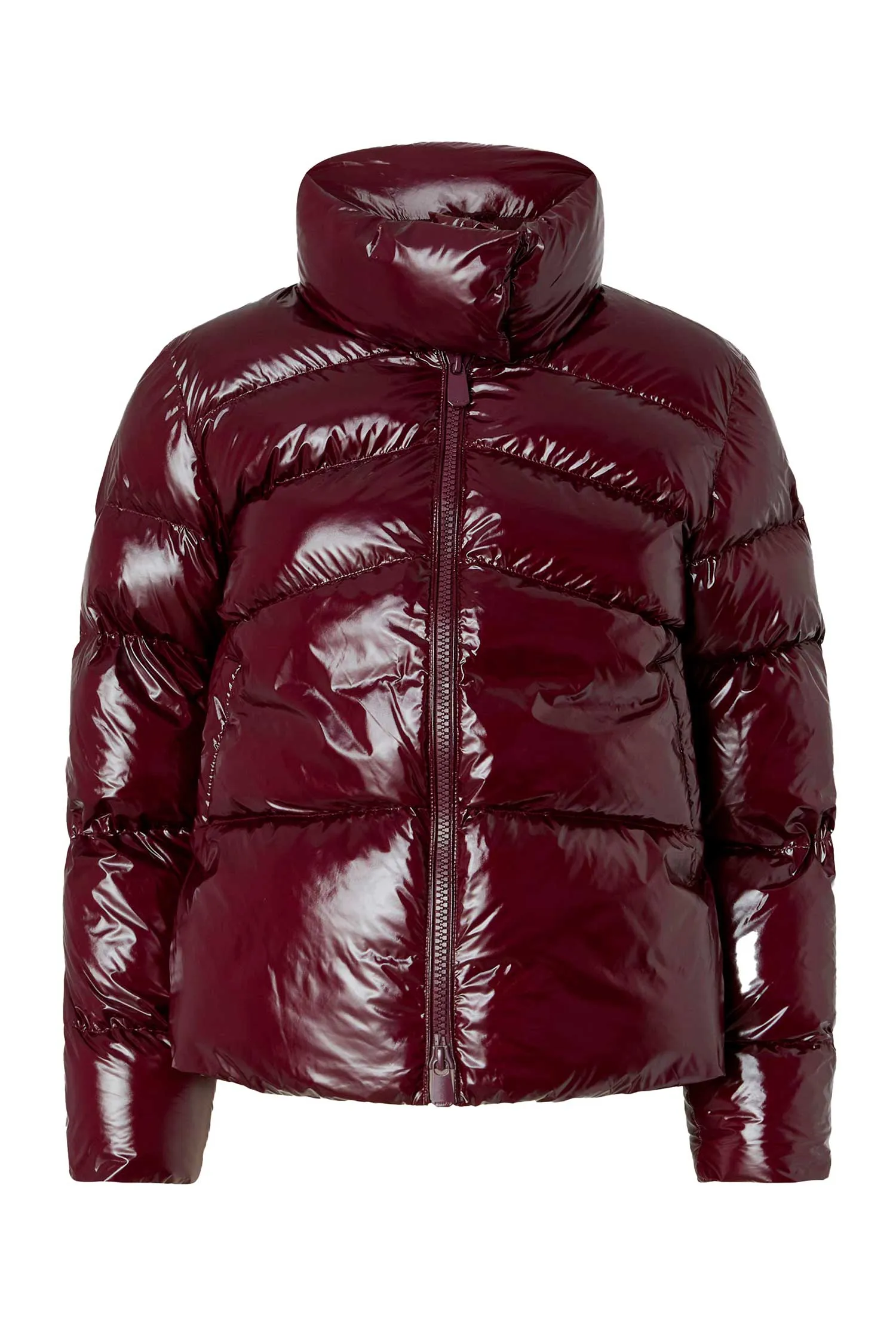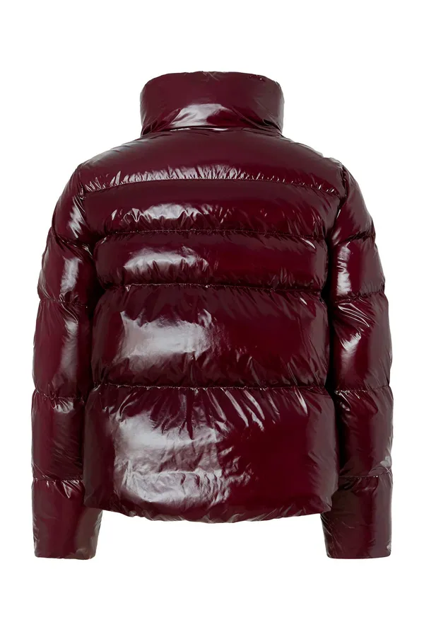 ПУХОВИК M.598 БОРДОВЫЙ ЛАК С СИНТЕТ.НАПОЛН., СТЁГАНЫЙ, УКОРОЧЕННЫЙ, НА РУКАВЕ НАШИВКА-ЛОГО В ТОН, ВОРОТ-СТОЙКА
