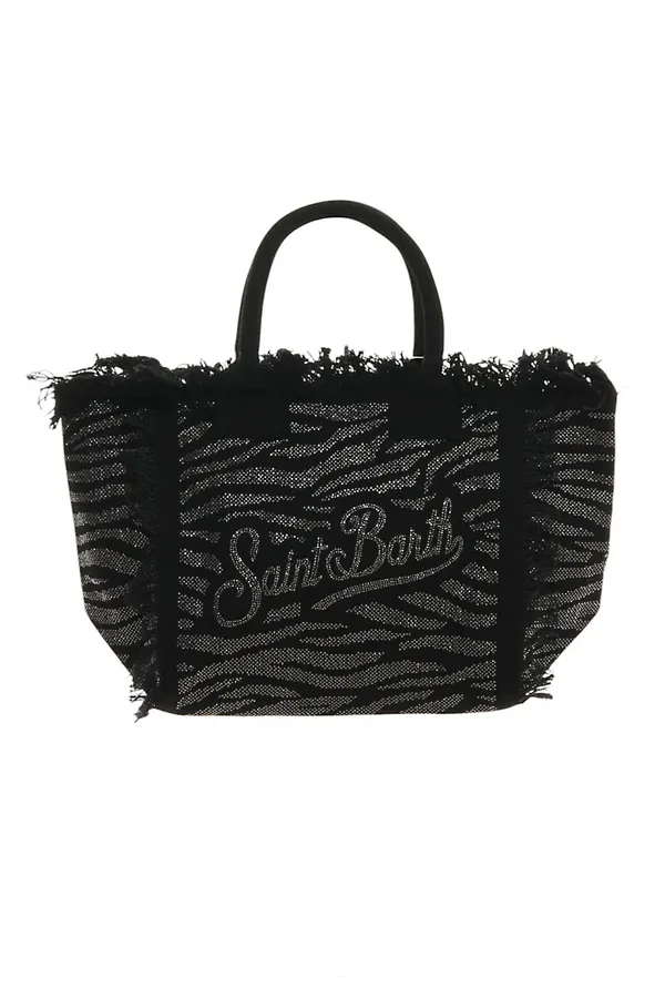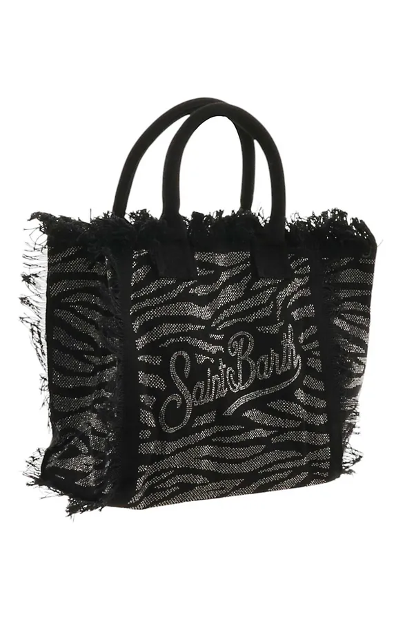 СУМКА VANITY ЧЁРНАЯ В СТРАЗАХ, ПРИНТ ЗЕБРА, БОЛЬШАЯ, БАХРОМА, РУЧКИ