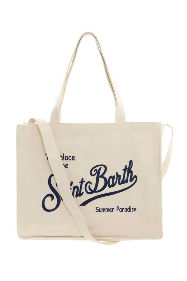 СУМКА-ШОПЕР ESSENTIAL BAG N CANVAS МОЛОЧНАЯ, БОЛЬШАЯ, ВЫШИТАЯ Т/СИНЯЯ ЛОГО-НАДПИСЬ, РУЧКИ, РЕМЕНЬ