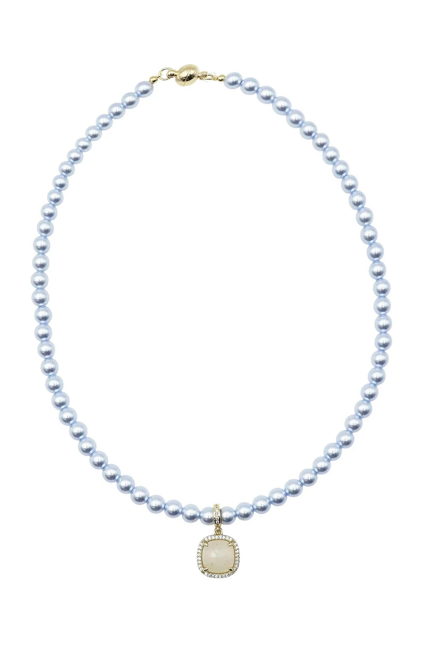 ЧОКЕР ИЗ ГОЛУБОГО ЖЕМЧУГА, КВАДРАТНАЯ ПОДВЕСКА С МОЛОЧНЫМ КАМНЕМ, МАГНИТНЫЙ ЗАМОК