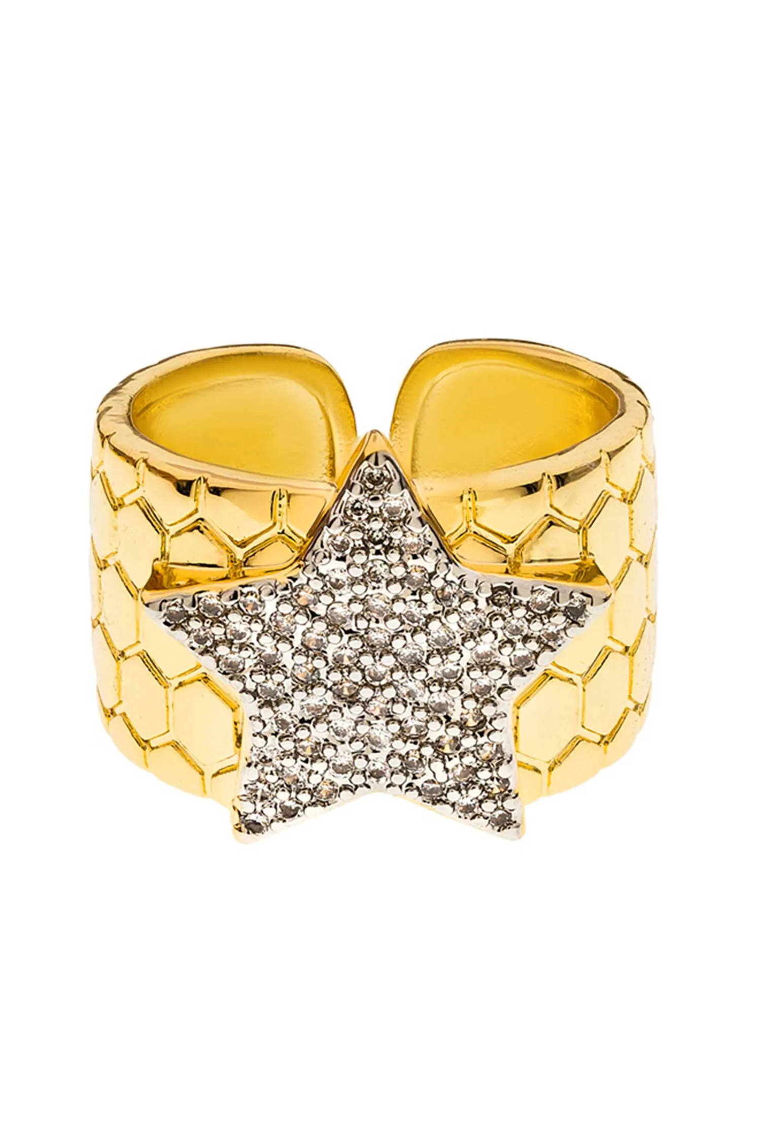 КОЛЬЦО BRILLIANT STAR ЗОЛОТИСТОЕ, ЗВЕЗДА С ФИАНИТАМИ