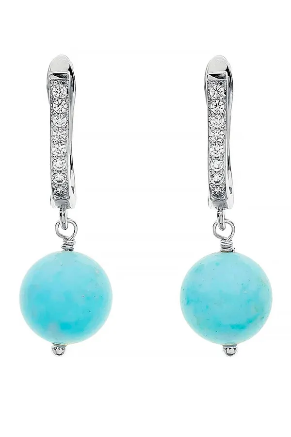 СЕРЬГИ SHYNESS СЕРЕБРИСТЫЕ, ПОДВЕСКА ИЗ ГОЛУБОГО ТУРКЕНИТА