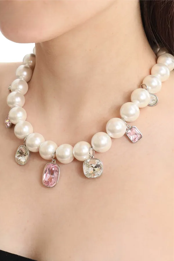 КОЛЬЕ CRYSTALS С КРУПНОГО БЕЛОГО ЖЕМЧУГА, ПОДВЕСКИ С ПРОЗРАЧНЫМИ КРИСТАЛЛАМИ, РЕГУЛИРУЕМЫЙ РАЗМЕР