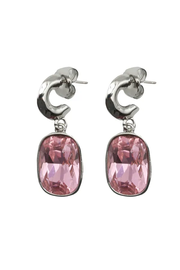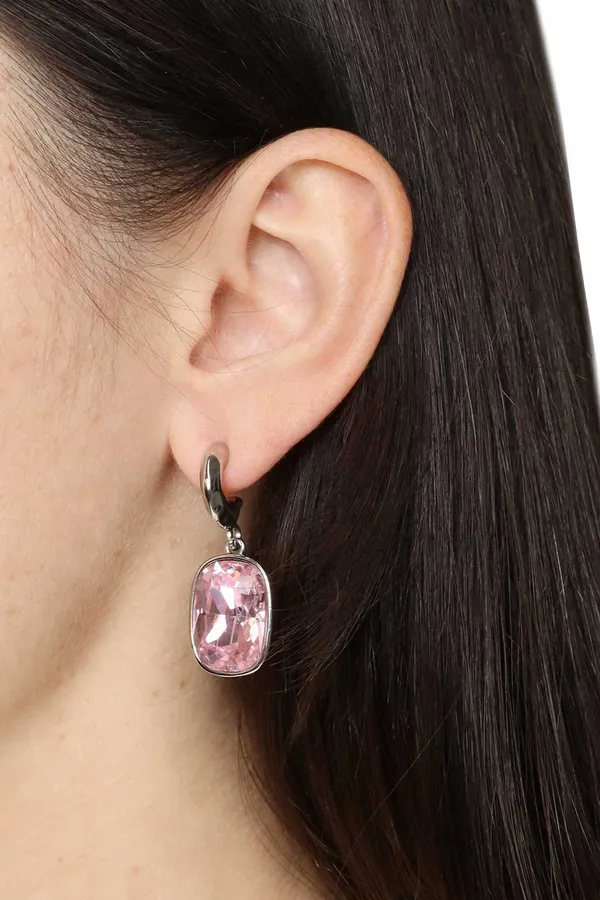 СЕРЬГИ CRYSTALS СЕРЕБРИСТЫЕ, ОВАЛЬНЫЕ ПОДВЕСКИ С РОЗОВЫМИ КРИСТАЛЛАМИ