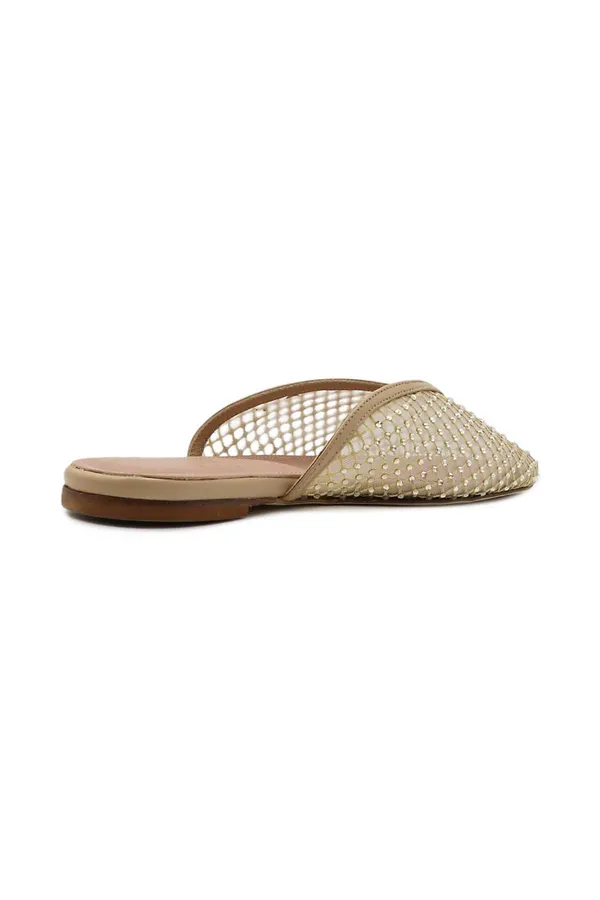 ШЛЁПАНЦЫ NICOLE БЕЖЕВЫЕ СЕТКА, ОТД.СТРАЗЫ В ТОН, БЕЖЕВАЯ ОКАНТОВКА, К=0,7