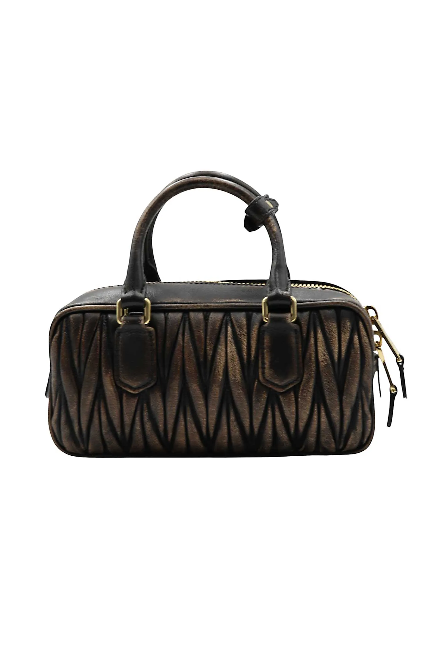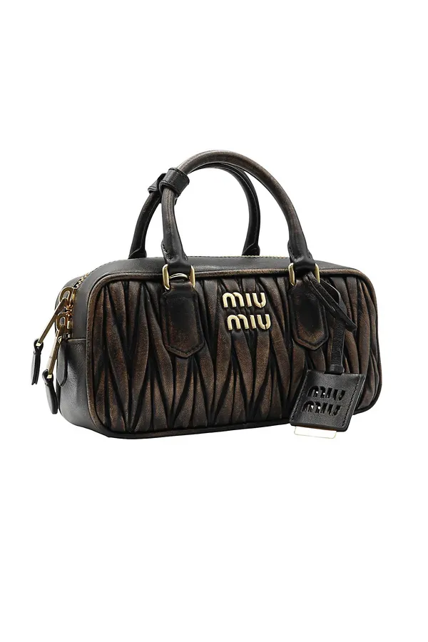 СУМКА ARCADIE Т/КОРИЧНЕВАЯ МАТЛАССЕ, СОСТАРЕННАЯ КОЖА, НА МОЛНИИ, ЗОЛОТИСТАЯ ЛОГО-НАДПИСЬ, БРЕЛОК-ЛОГО, РУЧКИ, РЕМЕШОК