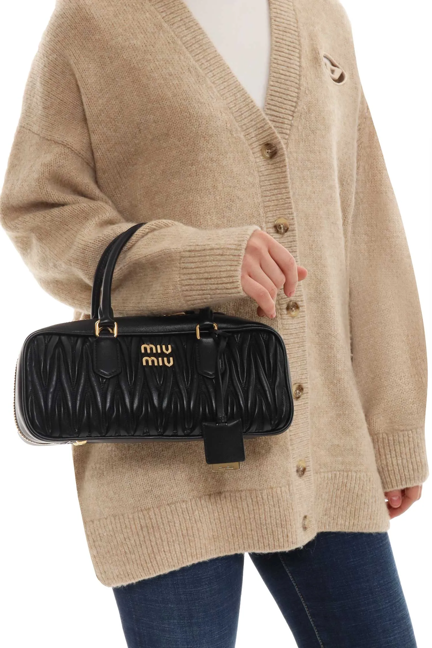 Сумка Arcadie с верхними ручками выполнена из кожи с объемной стеганой отделкой матлассе, придающей классическому силуэту архитектурную выразительность. Модель сочетает четкую форму, плотную кожаную конструкцию и хлопковую подкладку с внутренним карманом. Съемный плечевой ремень расширяет варианты ношения, а продуманная геометрия делает аксессуар универсальным элементом повседневного и более собранного гардероба.