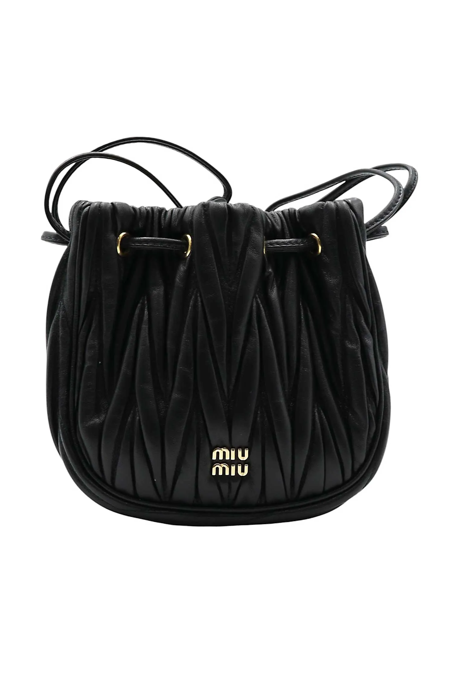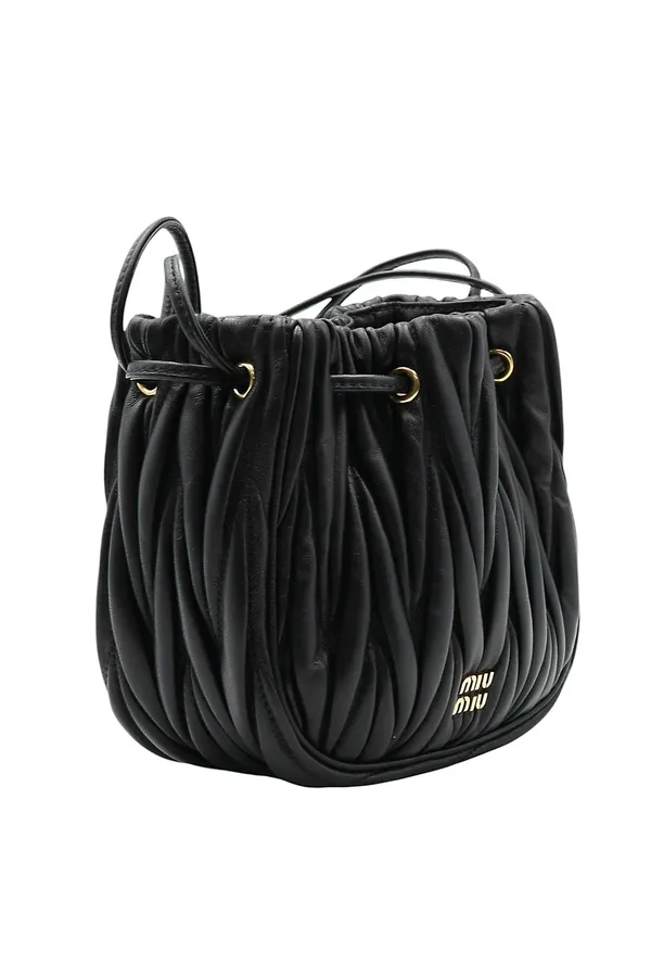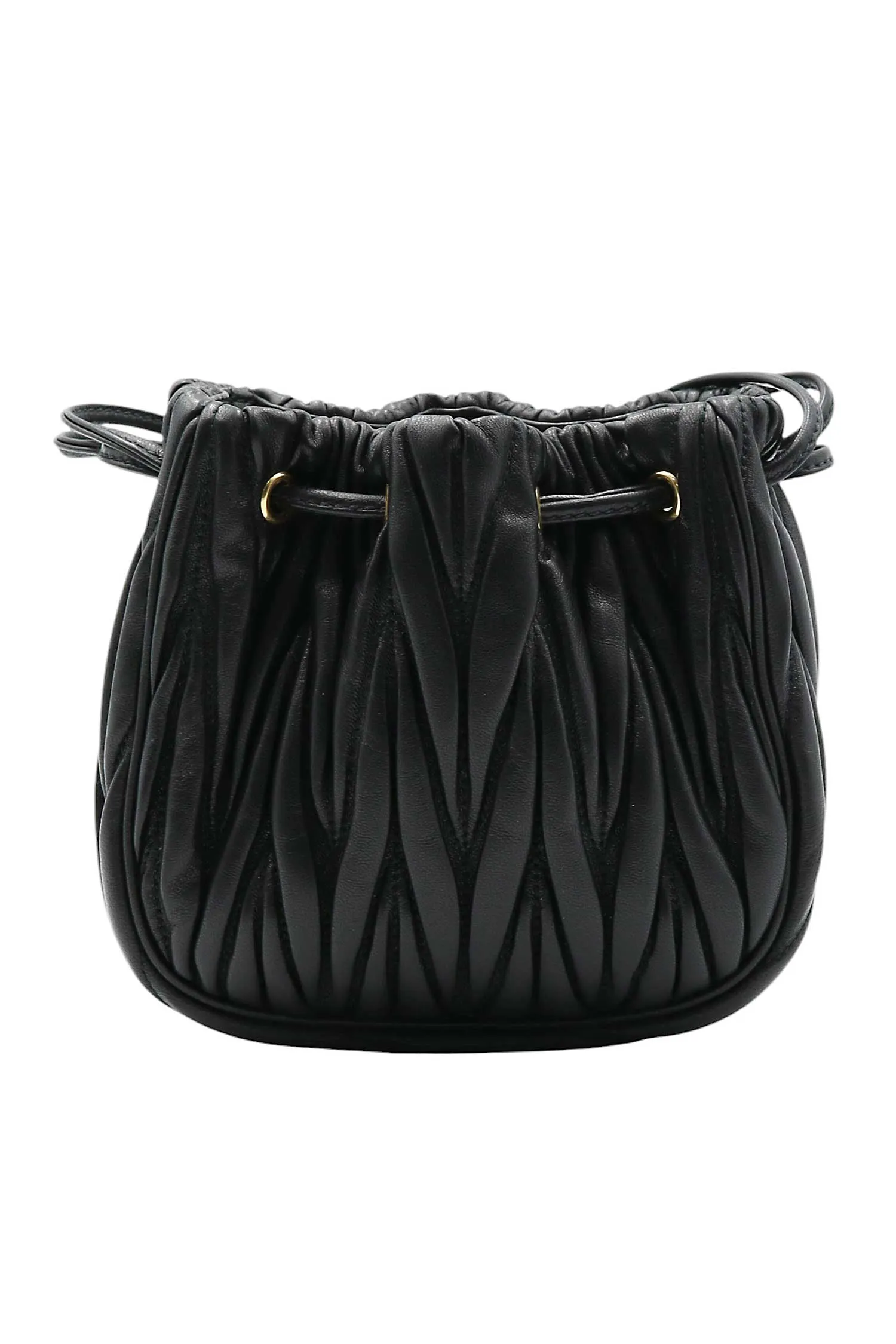 СУМКА-МЕШОК ЧЁРНАЯ МАТЛАССЕ, МАЛЕНЬКАЯ, НА КУЛИСКЕ, ЗОЛОТИСТАЯ ЛОГО-НАДПИСЬ