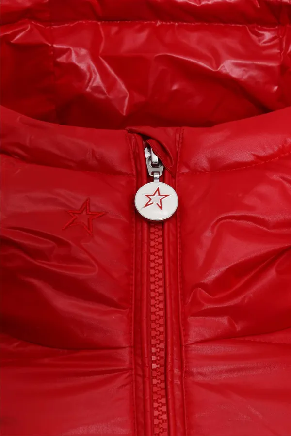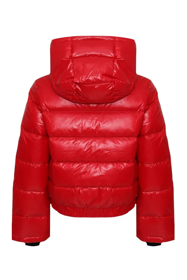 ПУХОВИК POLAR FLARE КРАСНЫЙ, УКОРОЧЕННЫЙ, СТЁГАНЫЙ, ТРИКОТАЖ.МАНЖЕТЫ, НА РУКАВЕ КАРМАН НА МОЛНИИ, КАПЮШОН