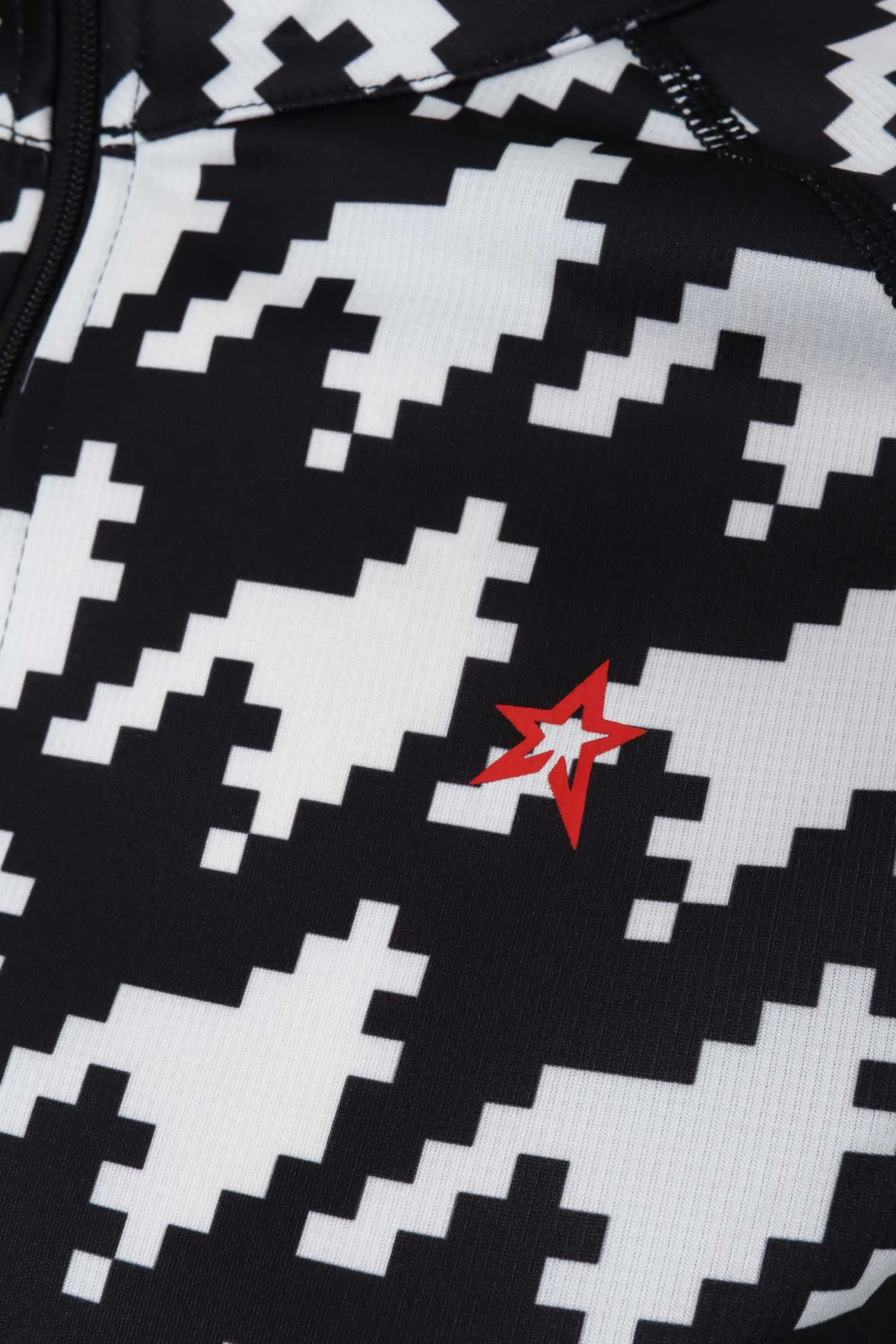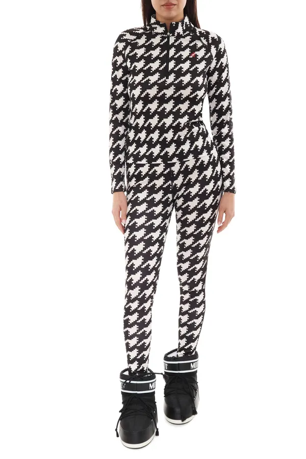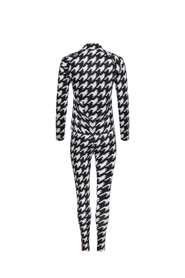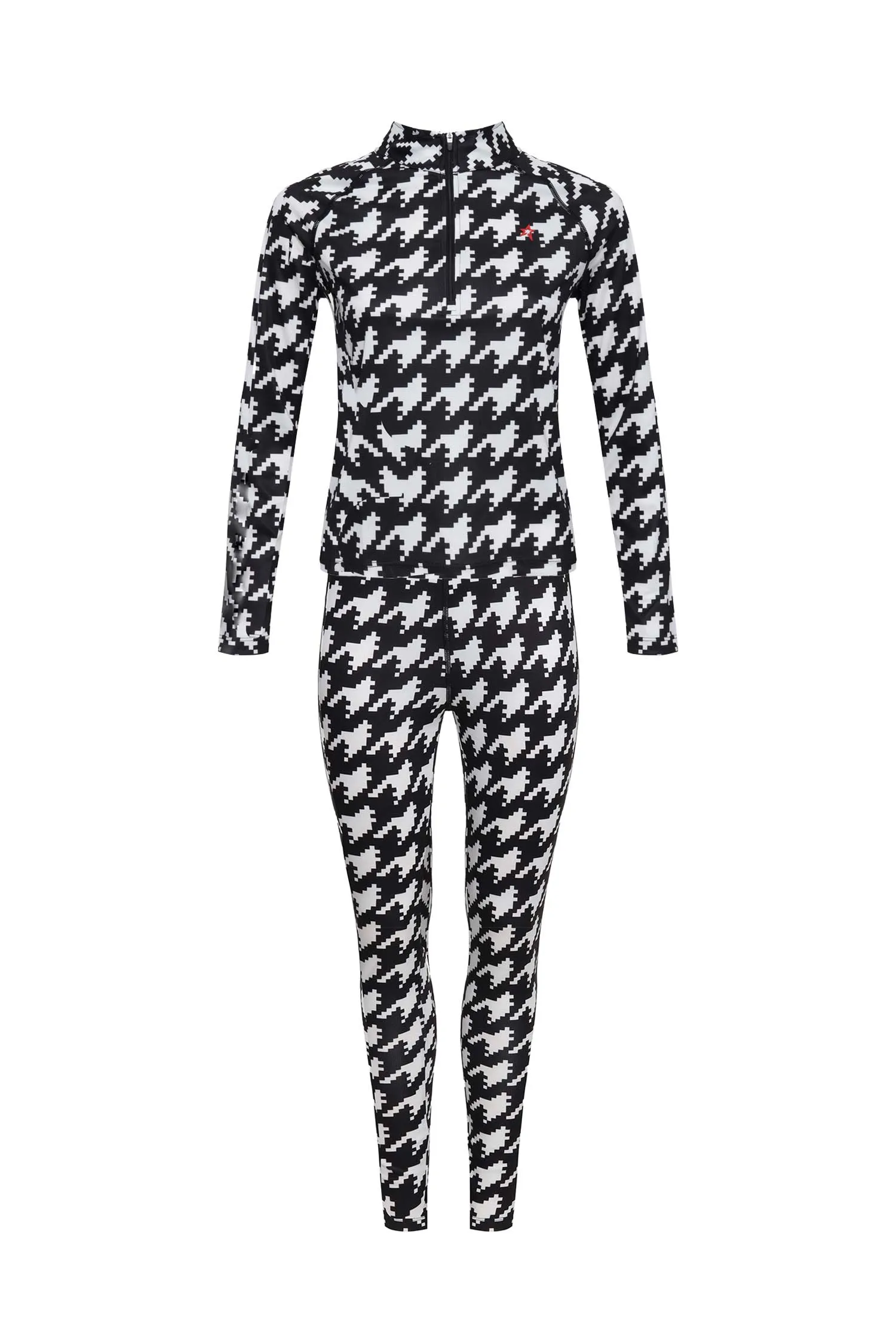 КОСТЮМ ЧЁРНО-БЕЛЫЙ, КРУПНЫЙ ПРИНТ ГУСИНАЯ ЛАПКА, ЭЛАСТИЧНЫЙ, ФУТБОЛКА+ЛЕГИНСЫ, ВОРОТ-СТОЙКА НА МОЛНИИ, ДЛ/РУК.