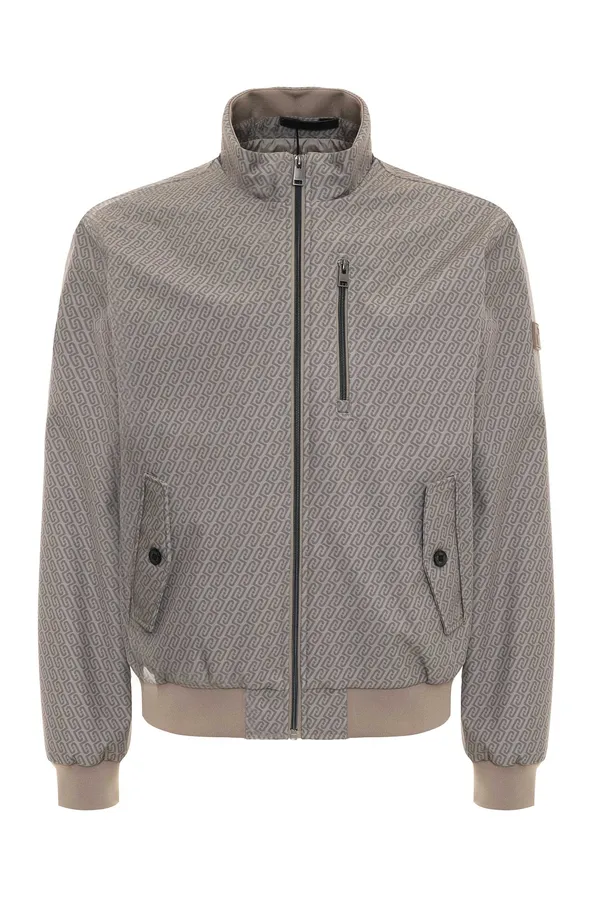 ВЕТРОВКА-БОМБЕР БЕЖЕВАЯ В ЛОГО, НА ГРУДИ КАРМАН НА МОЛНИИ, КАРМАНЫ С КЛАПАНОМ НА ПУГОВИЦАХ, ТРИКОТАЖ.МАНЖЕТЫ, ВОРОТ-СТОЙКА