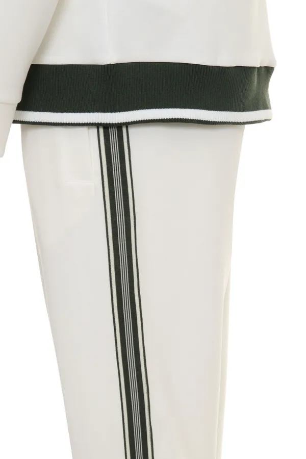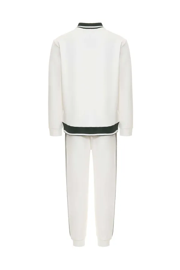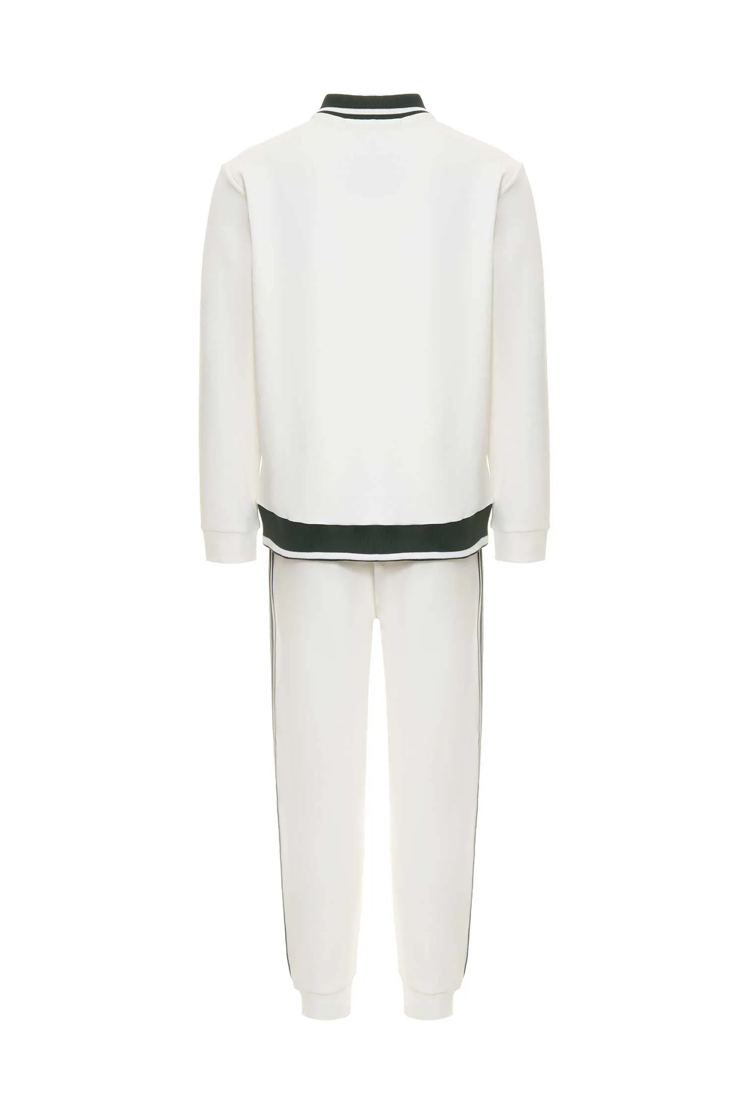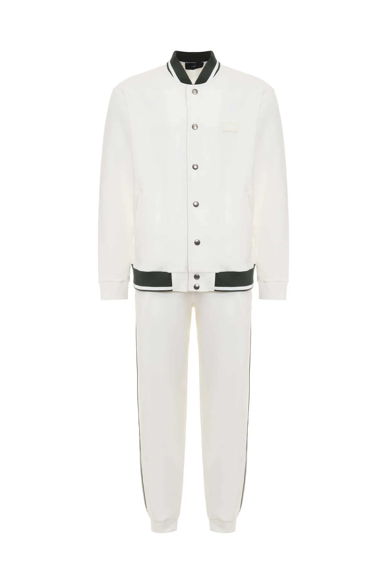 КОСТЮМ M.6017 БЕЛЫЙ С ЗЕЛЁНЫМИ ЛАМПАСАМИ, ОЛИМПИЙКА-БОМБЕР НА КНОПКАХ+ШТАНЫ НА КУЛИСКЕ, СЗАДИ НАКЛАДНОЙ КАРМАН