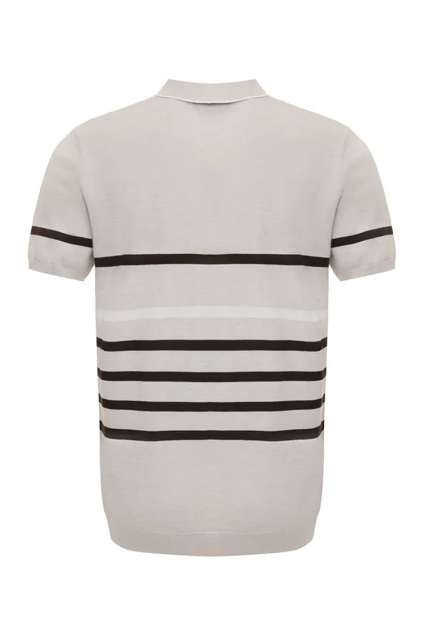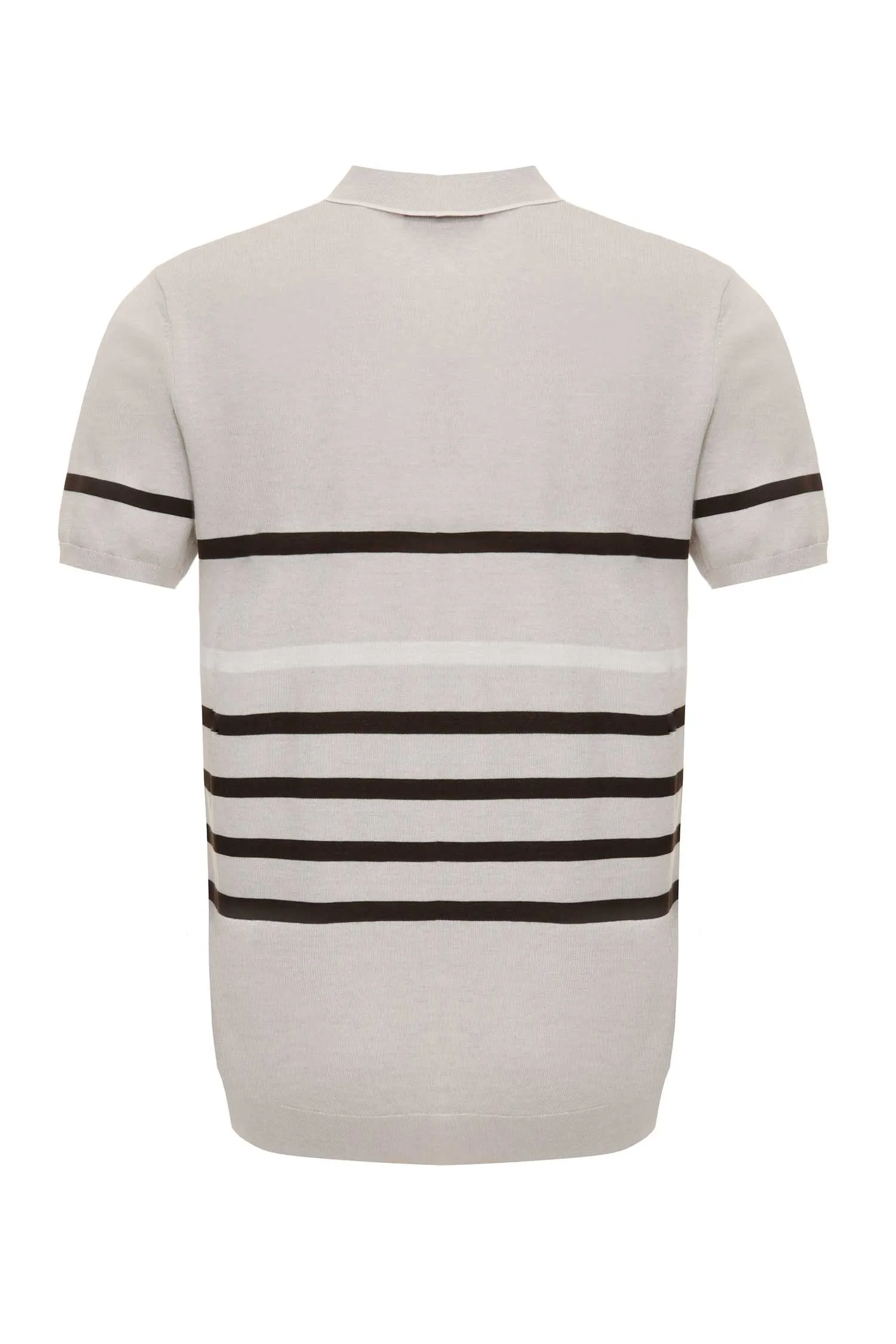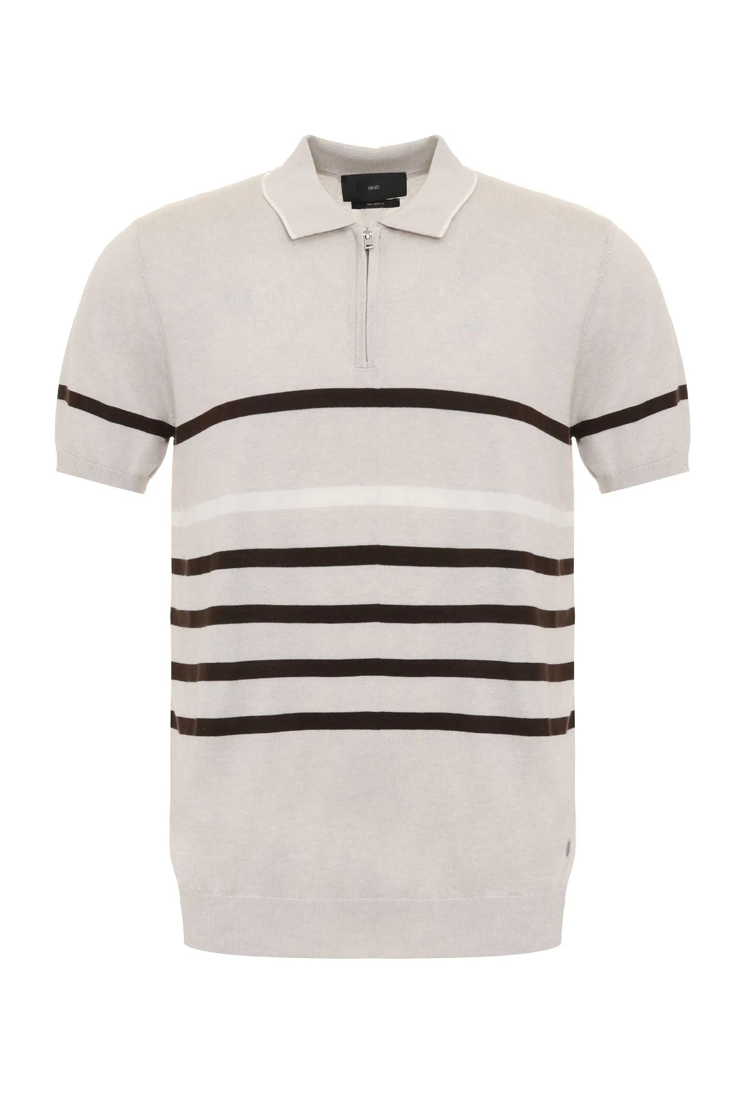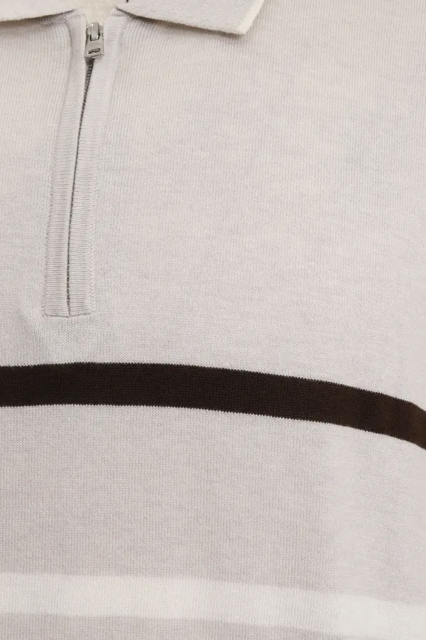 ДЖЕМПЕР-ПОЛО СВ/СЕРЫЙ В КОРИЧНЕВУЮ ПОЛОСКУ, ШЁЛК, ВОРОТ НА МОЛНИИ, К/РУК.