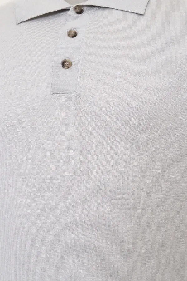 ДЖЕМПЕР-ПОЛО M.6071 СВ/СЕРЫЙ ШЁЛК, СНИЗУ МАЛЕНЬКОЕ МЕТАЛЛ.ЛОГО, КР/РУК.