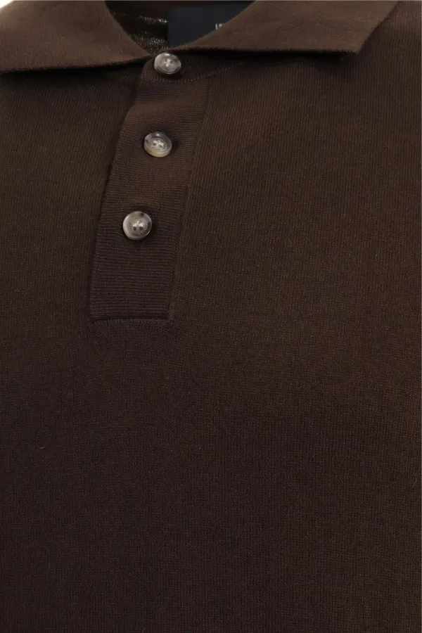 ДЖЕМПЕР-ПОЛО M.6071 Т/КОРИЧНЕВЫЙ, ШЁЛК, СНИЗУ МАЛЕНЬКОЕ МЕТАЛЛ.ЛОГО, КР/РУК.