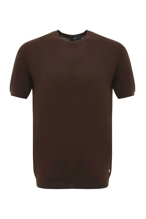 ФУТБОЛКА M.6072 Т/КОРИЧНЕВАЯ ШЁЛК, ТРИКОТАЖНАЯ, СНИЗУ МАЛЕНЬКОЕ МЕТАЛЛ.ЛОГО