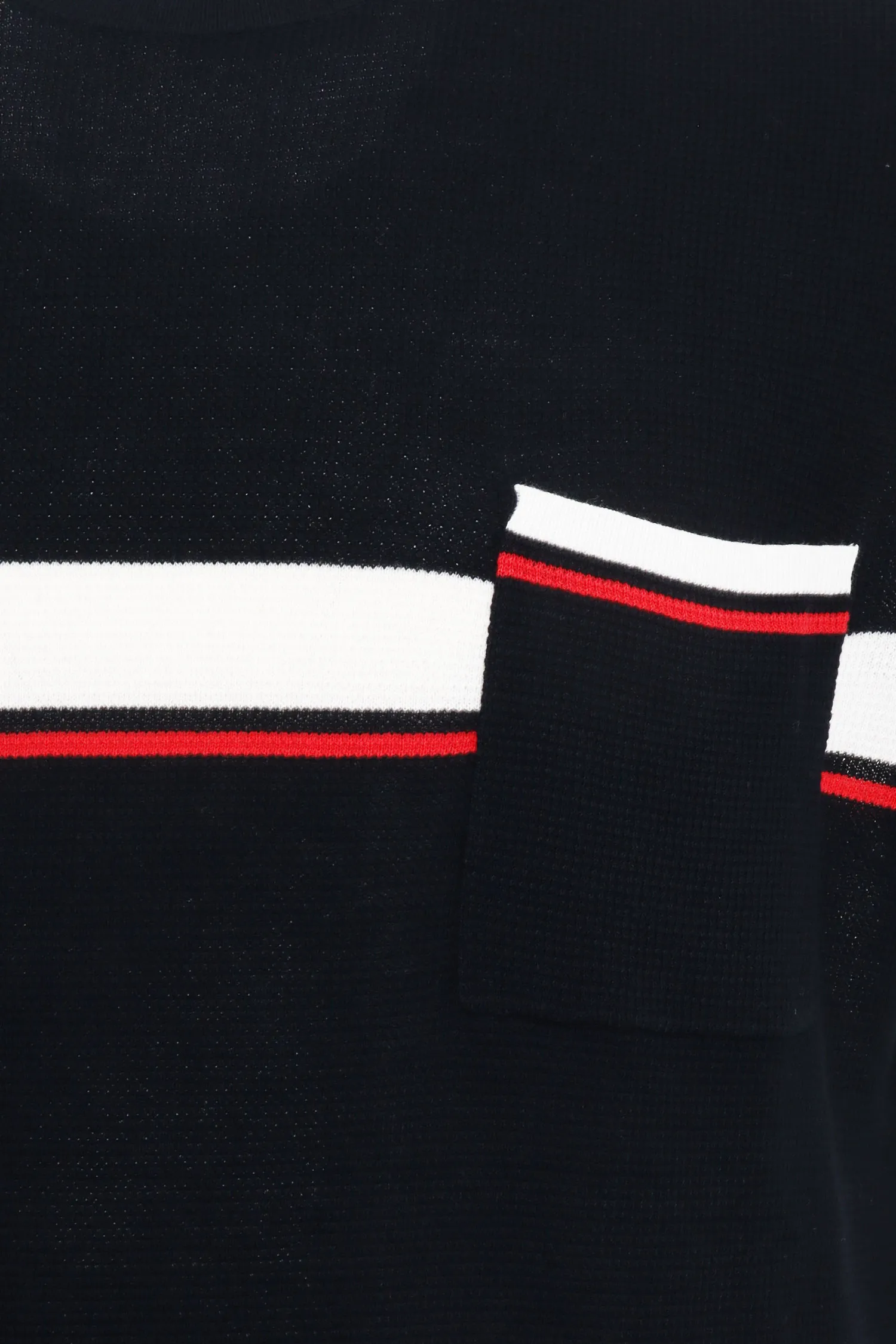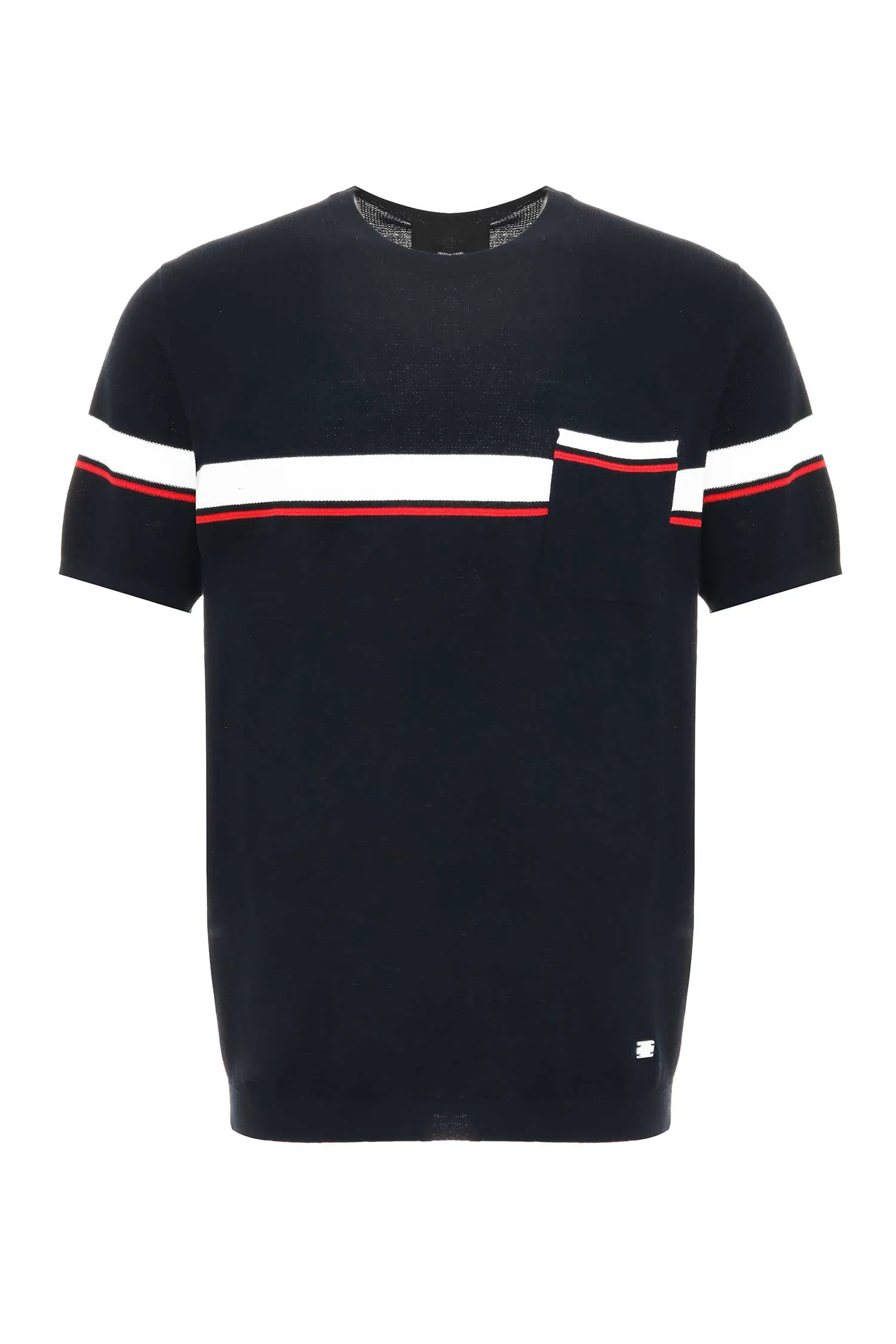 ФУТБОЛКА M.6126 Т/СИНЯЯ, БЕЛАЯ/КРАСНАЯ ГОРИЗОНТАЛЬНЫЕ ПОЛОСЫ, ТРИКОТАЖНАЯ, НА ГРУДИ НАКЛАДНОЙ КАРМАН