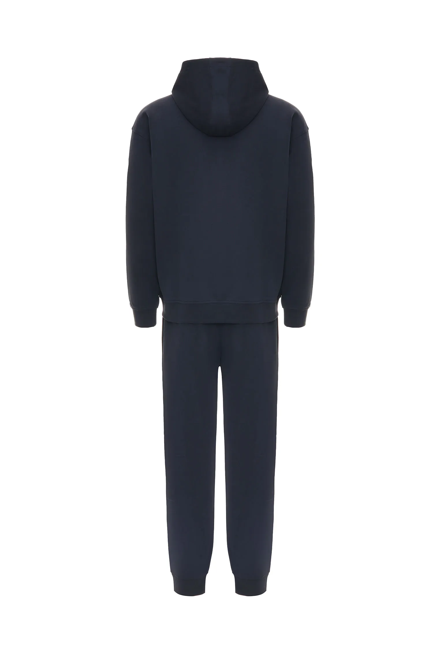 КОСТЮМ Т/СИНИЙ, ОЛИМПИЙКА С КАПЮШОНОМ+ШТАНЫ НА КУЛИСКЕ, НА ГРУДИ ПРОРЕЗИНЕН.ЛОГО В ТОН