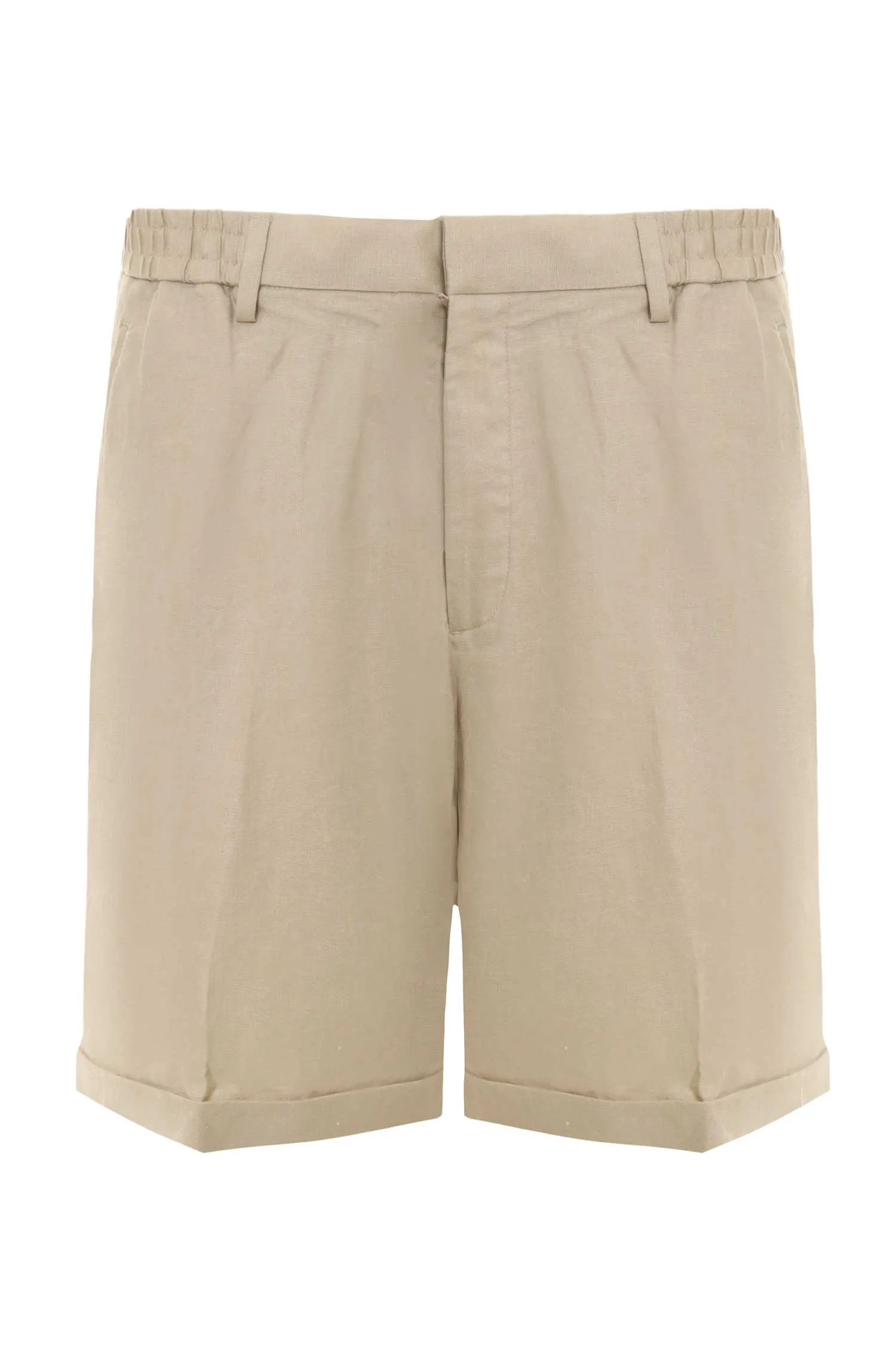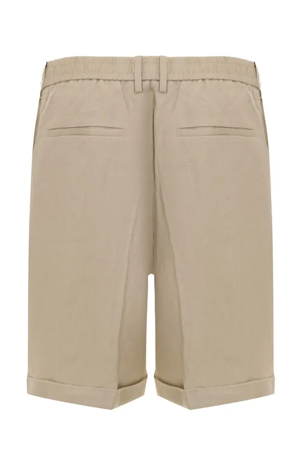 ШОРТЫ БЕЖЕВЫЕ ЛЁН, С ОТВОРОТАМИ, ЭЛАСТИЧНЫЙ ПОЯС НА РЕЗИНКЕ, СЗАДИ ПРОРЕЗНЫЕ КАРМАНЫ