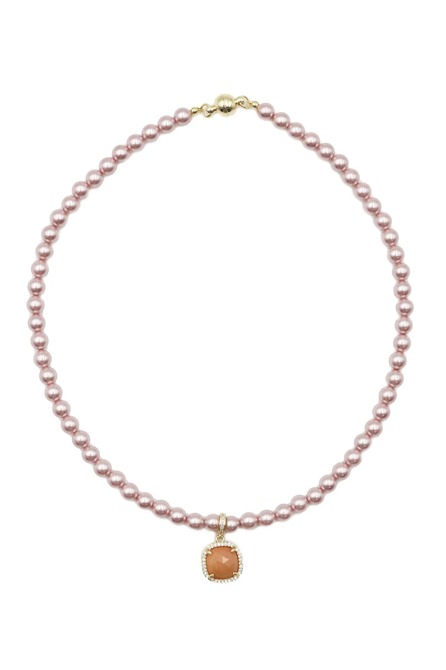 ЧОКЕР ИЗ РОЗОВОГО ЖЕМЧУГА, КВАДРАТНАЯ ПОДВЕСКА С БЕЖЕВЫМ КАМНЕМ, МАГНИТНЫЙ ЗАМОК