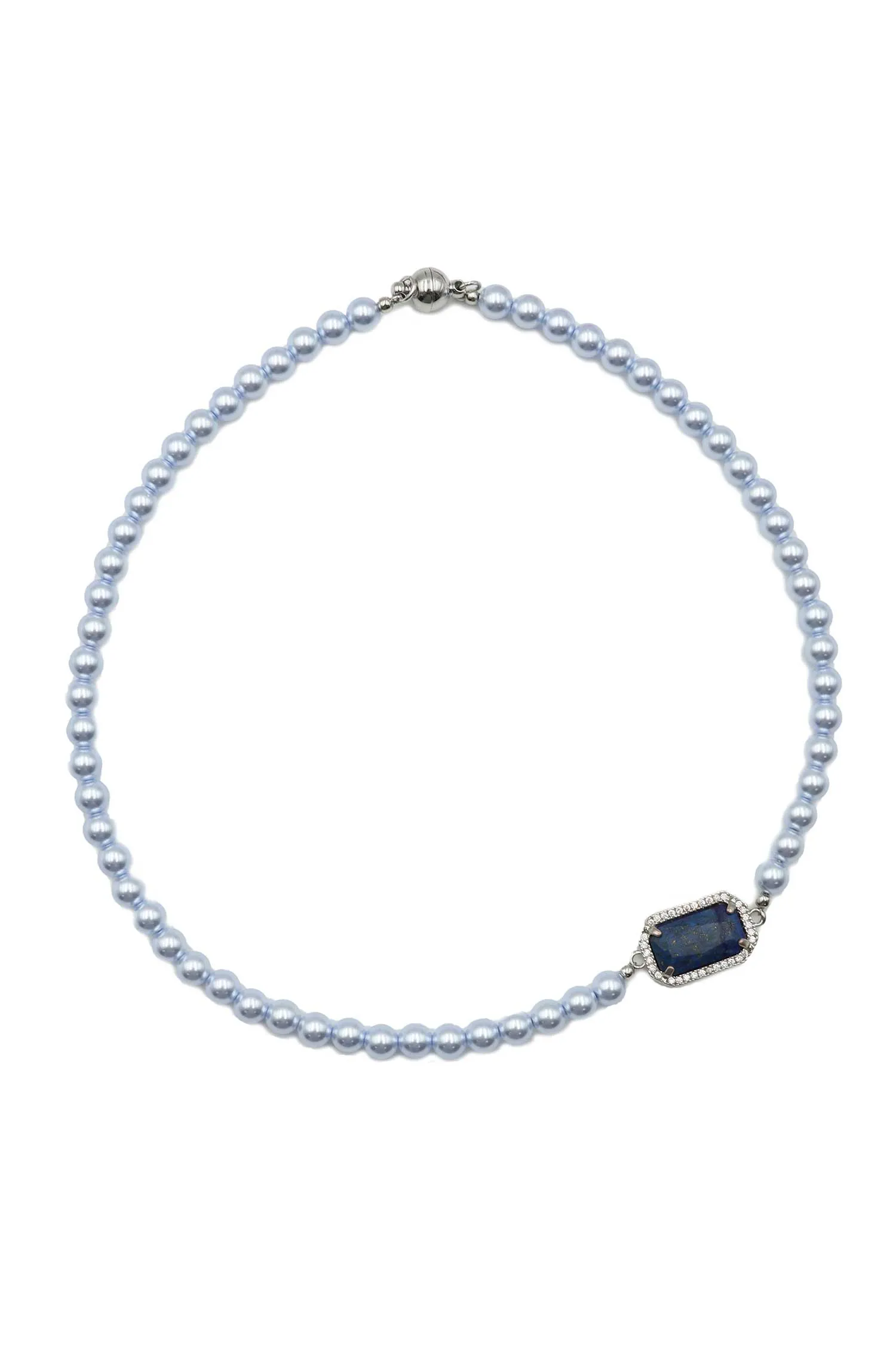 ЧОКЕР ИЗ ГОЛУБОГО ЖЕМЧУГА, КАБАШОН С Т/СИНИМ КАМНЕМ, МАГНИТНЫЙ ЗАМОК