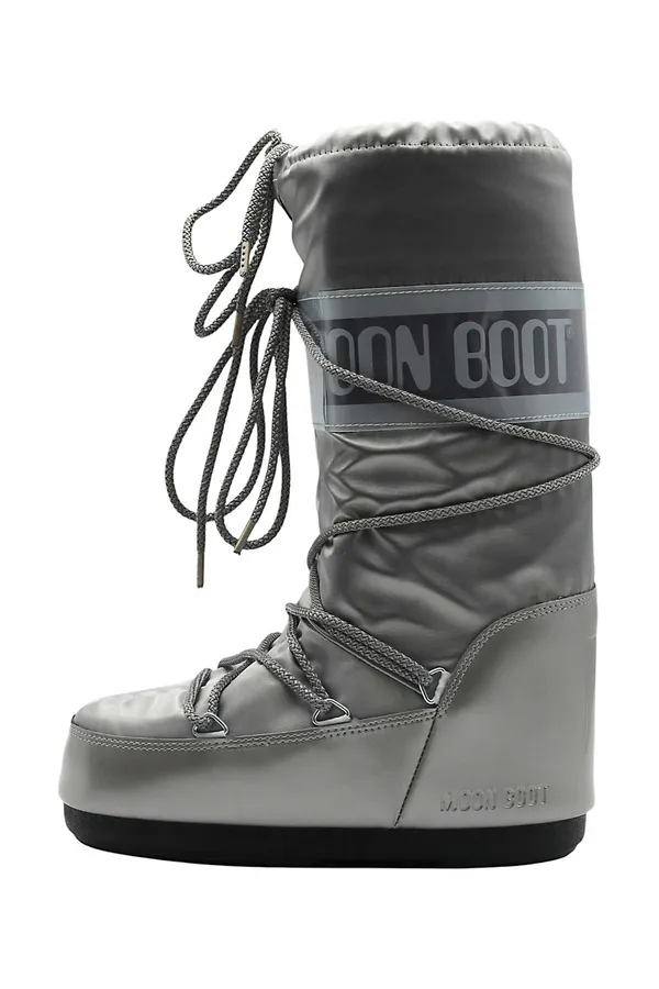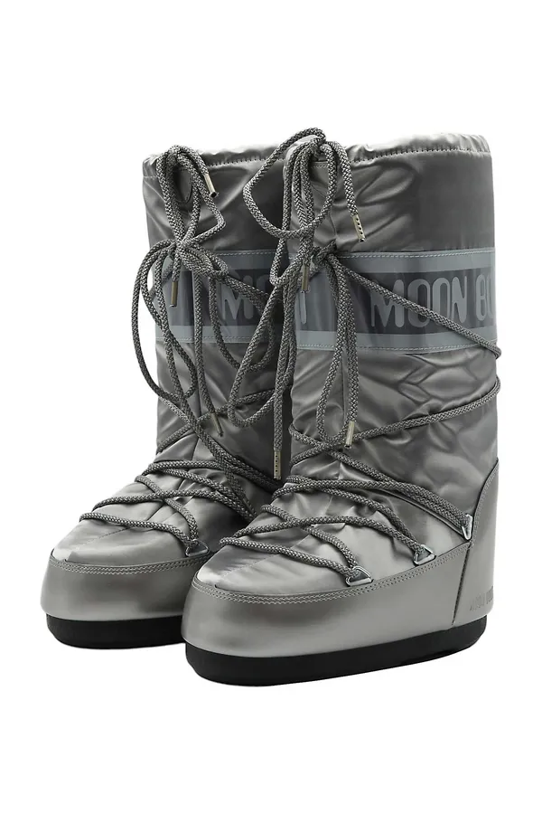 МУНБУТЫ ICON GLANCE СЕРЕБРИСТЫЕ АТЛАС, ВЫСОКИЕ, ШНУРОВКА, СВ/СЕРАЯ ЛОГО-НАДПИСЬ